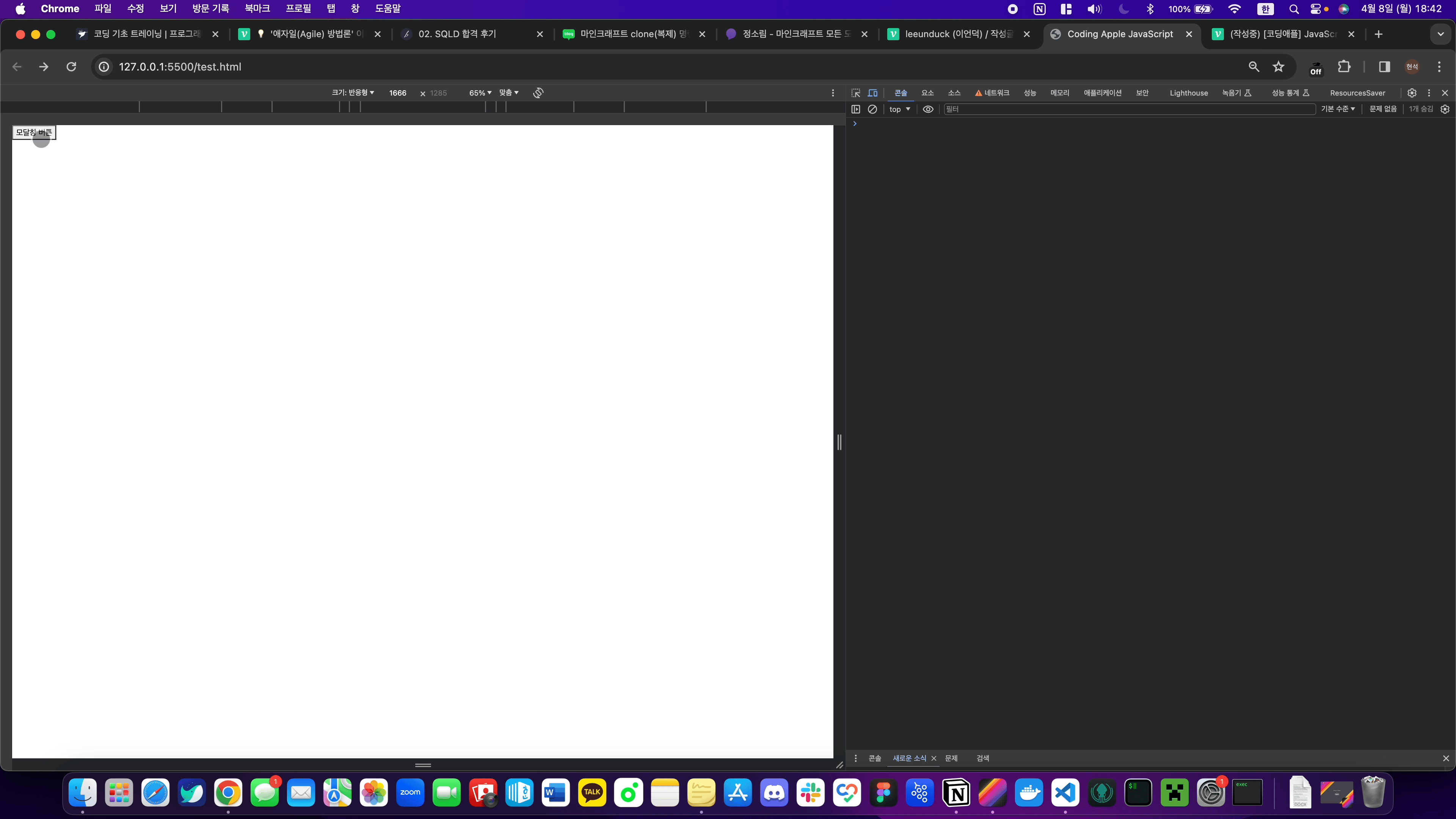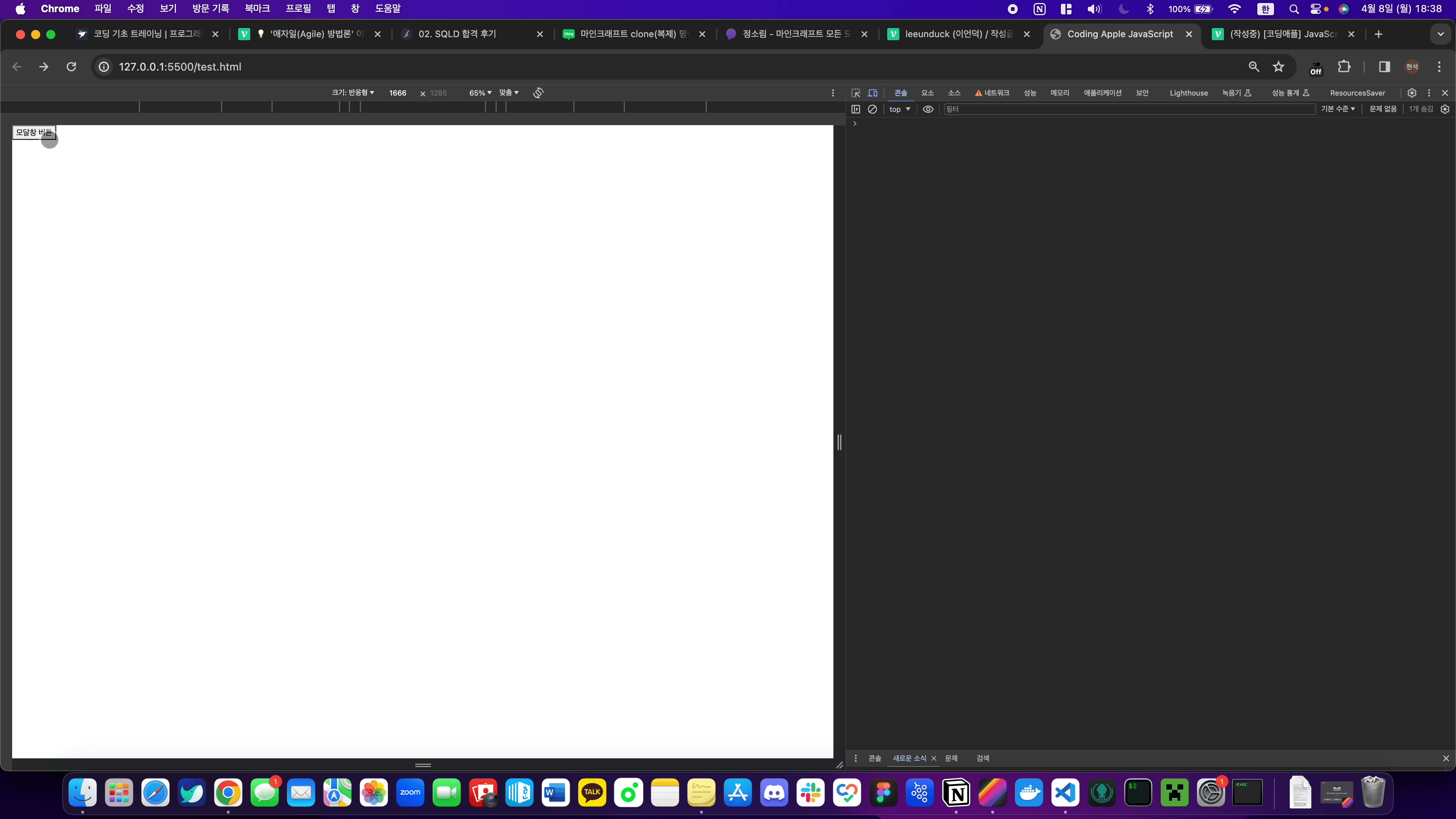참고2) 페이지 내의 다른 곳에서 자바스크립트 문법 에러가 뜨는 경우 다른 코드도 실행이 제대로 되지 않습니다.