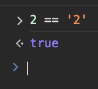 console.log(2 == '2')//true 나옴console.log(2 === '2')//false 나옴