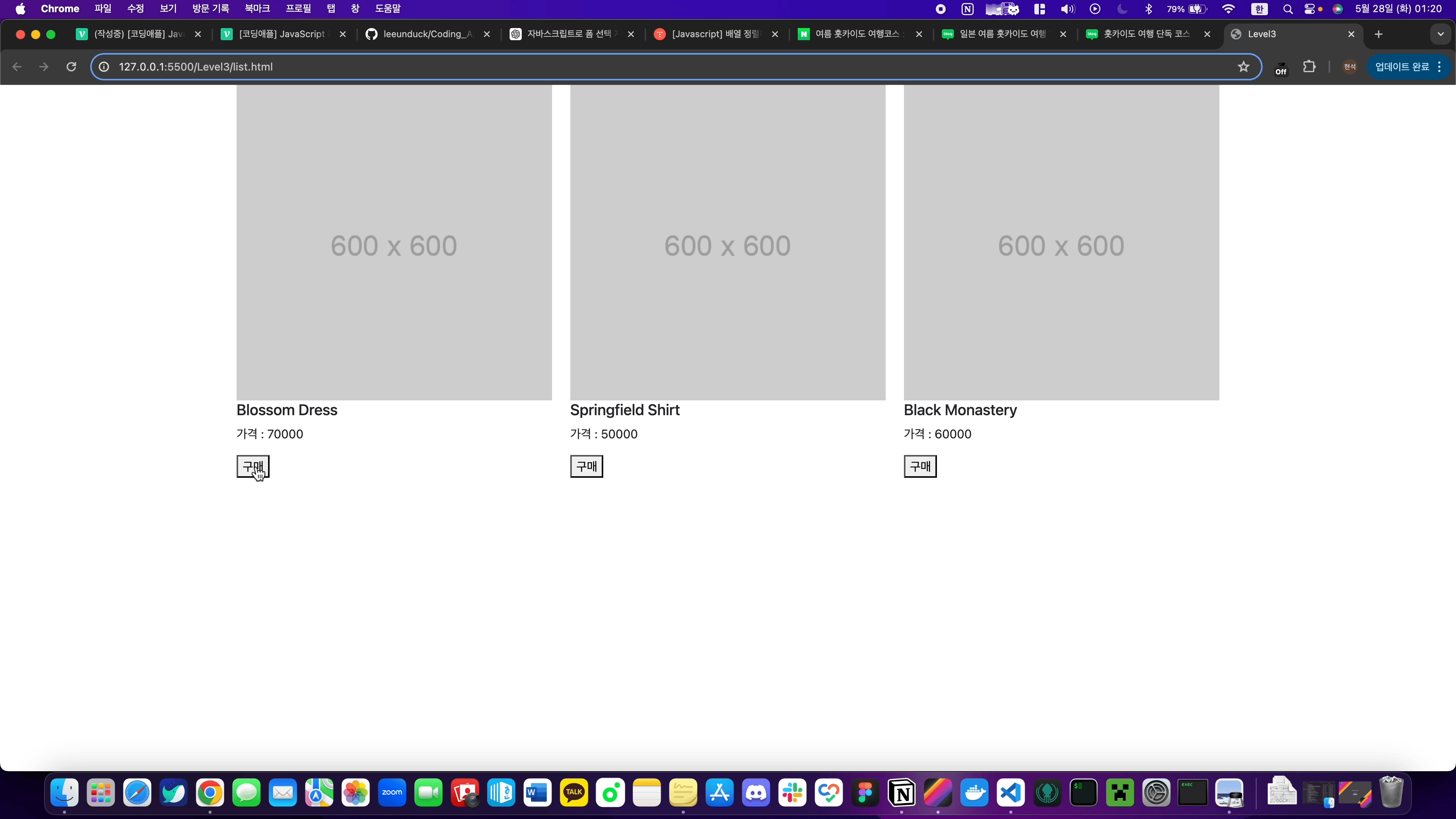 구매 누를 때 마다array에 항목이 저렇게 추가되도록 해봅시다.