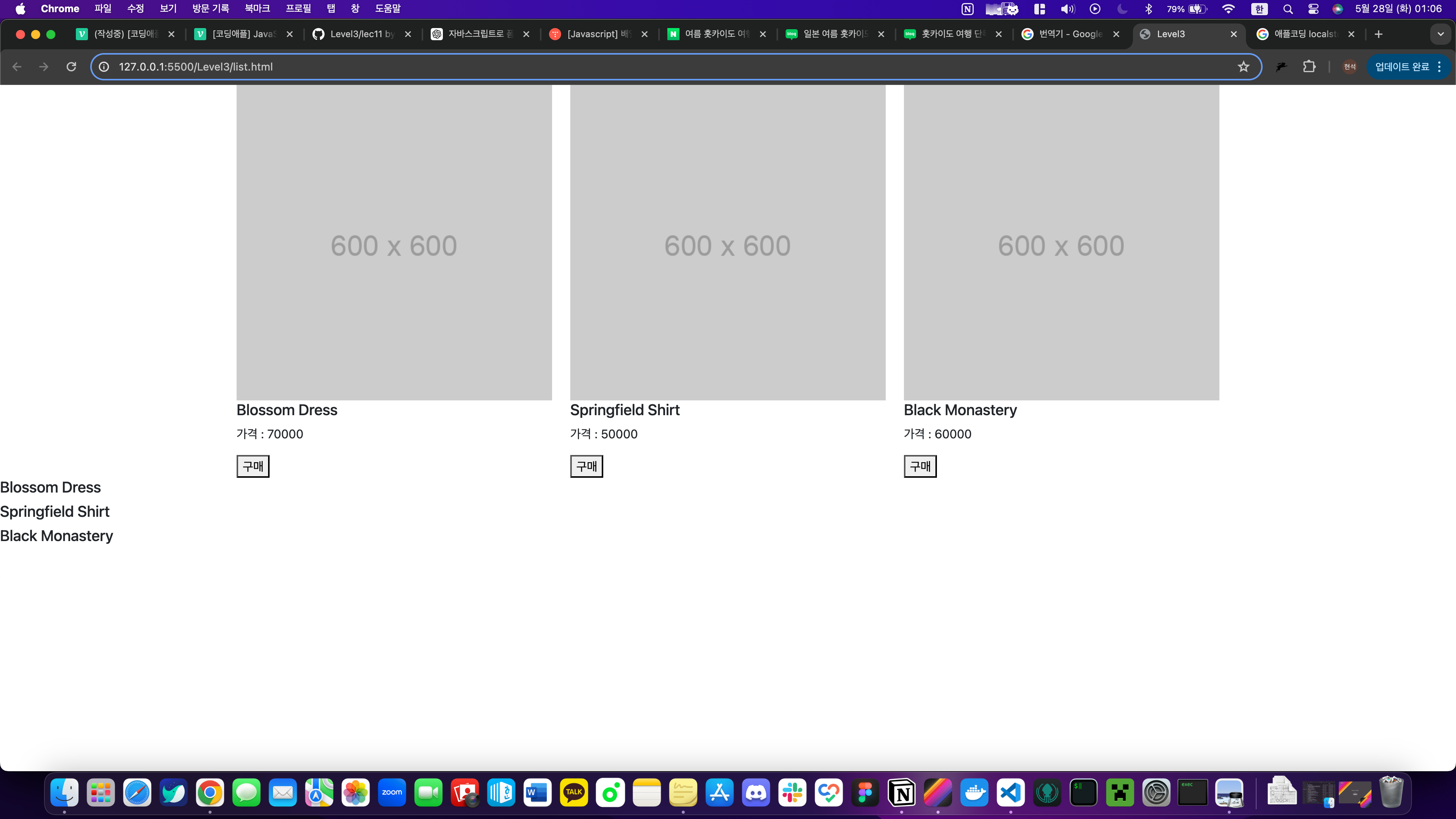 array에 담긴 상품들을html로 보여주기