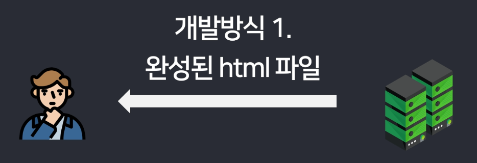 근데 html을 누가 완성하는지에 따라 개발방식의 차이가 있다.