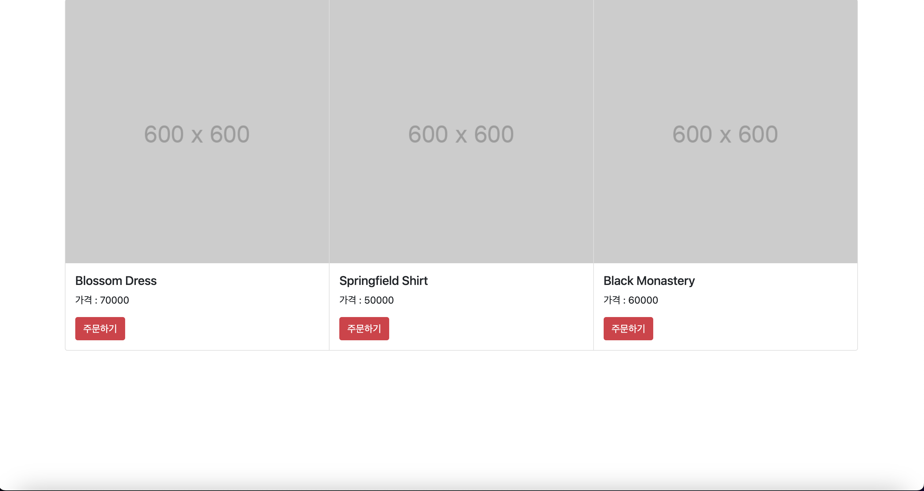 그럼 상품 3개를 진열할 수 있는 카드레이아웃이 나옵니다. (bootstrap 필요)