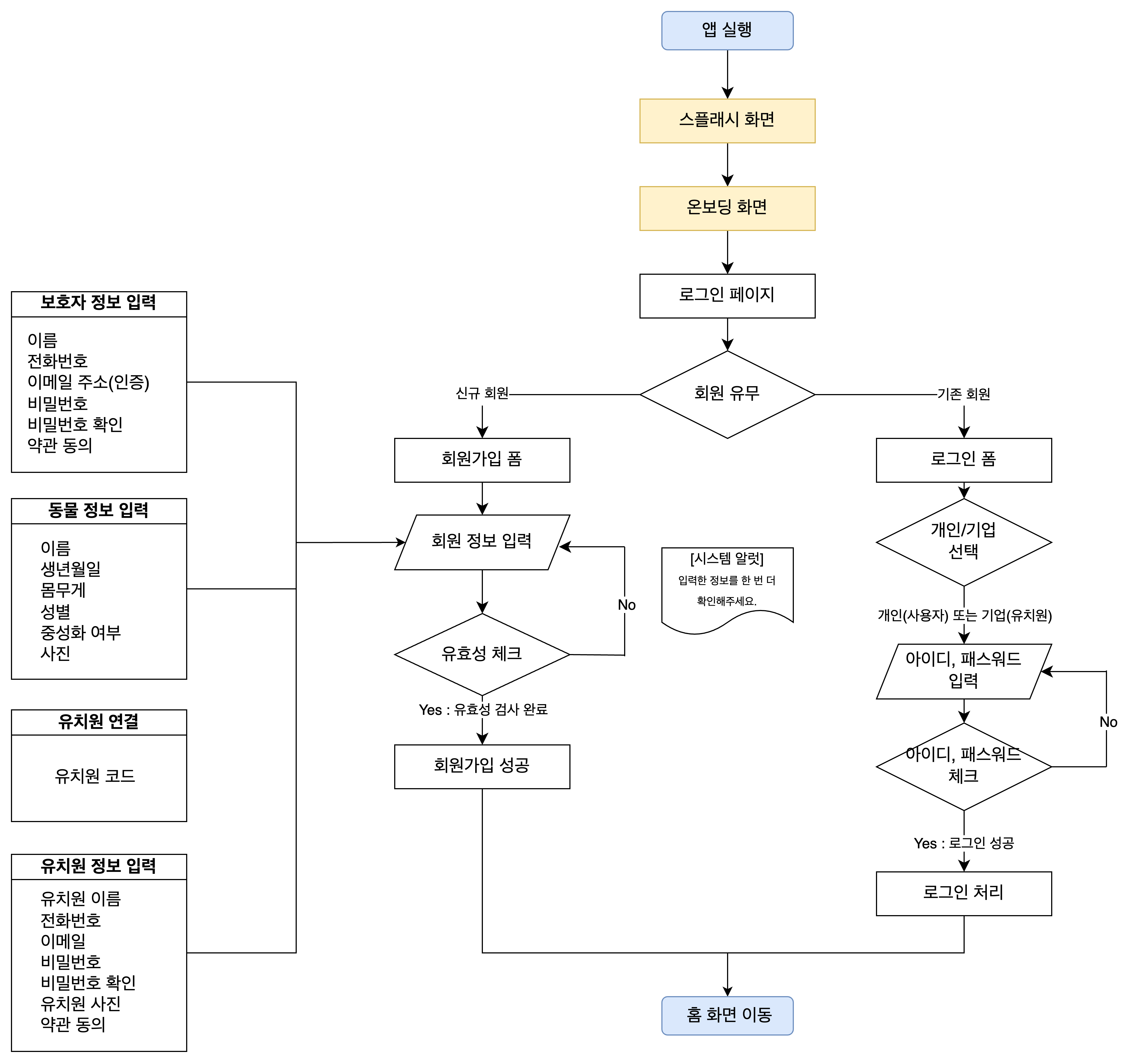 남은 화면에 대한 플로우차트는 추후 구성 예정입니다.
