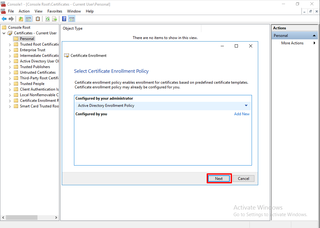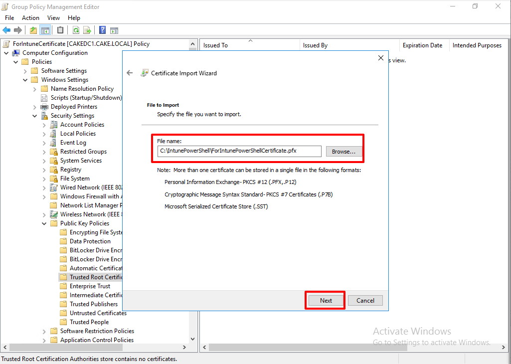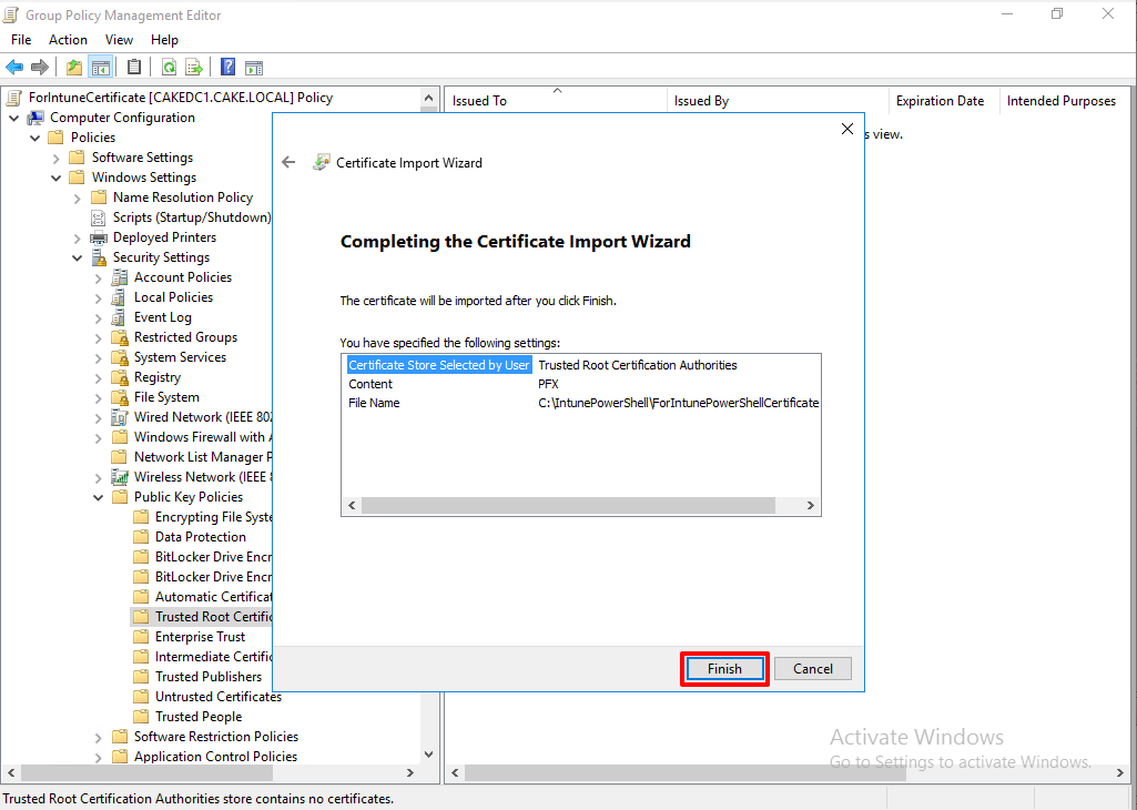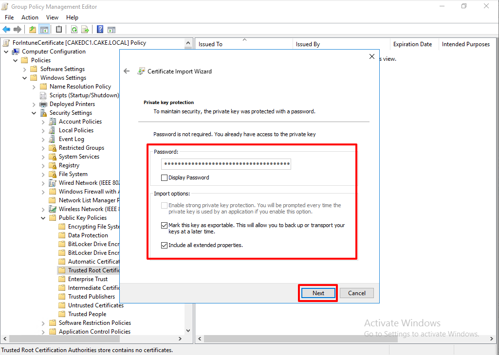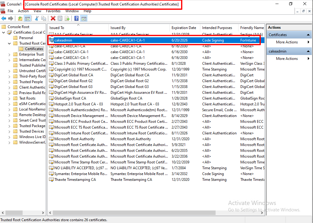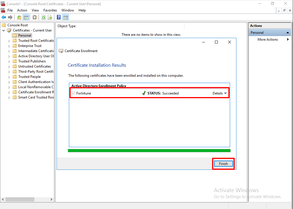 Moving on one of the domain joined devices. Run cmd as administrator and execute the command 'gpupdate /force' or you can take some time, the certificate will be installed automatically.