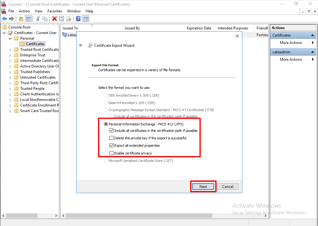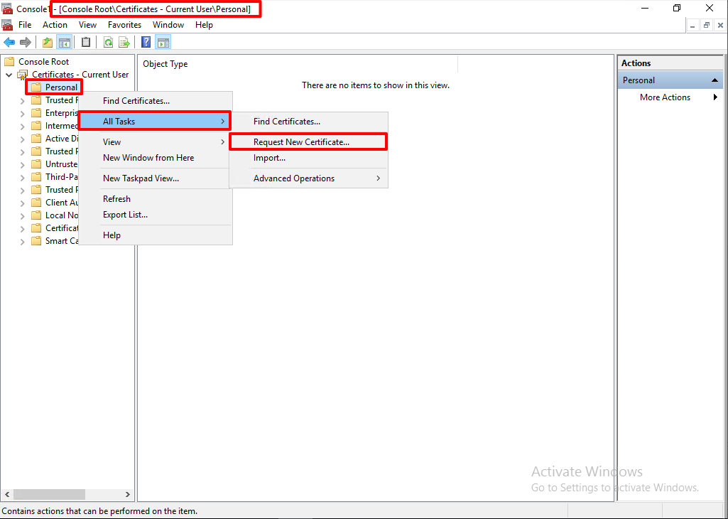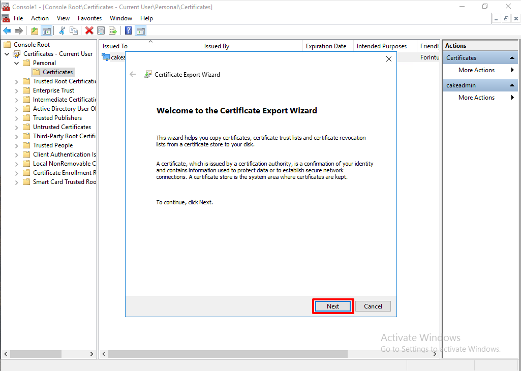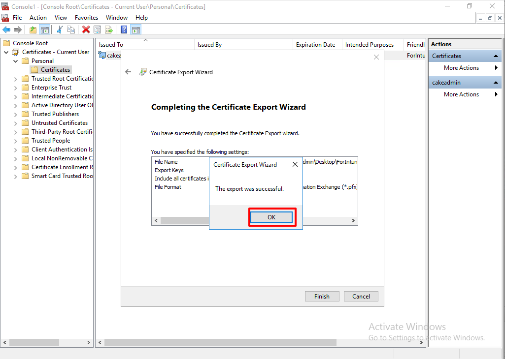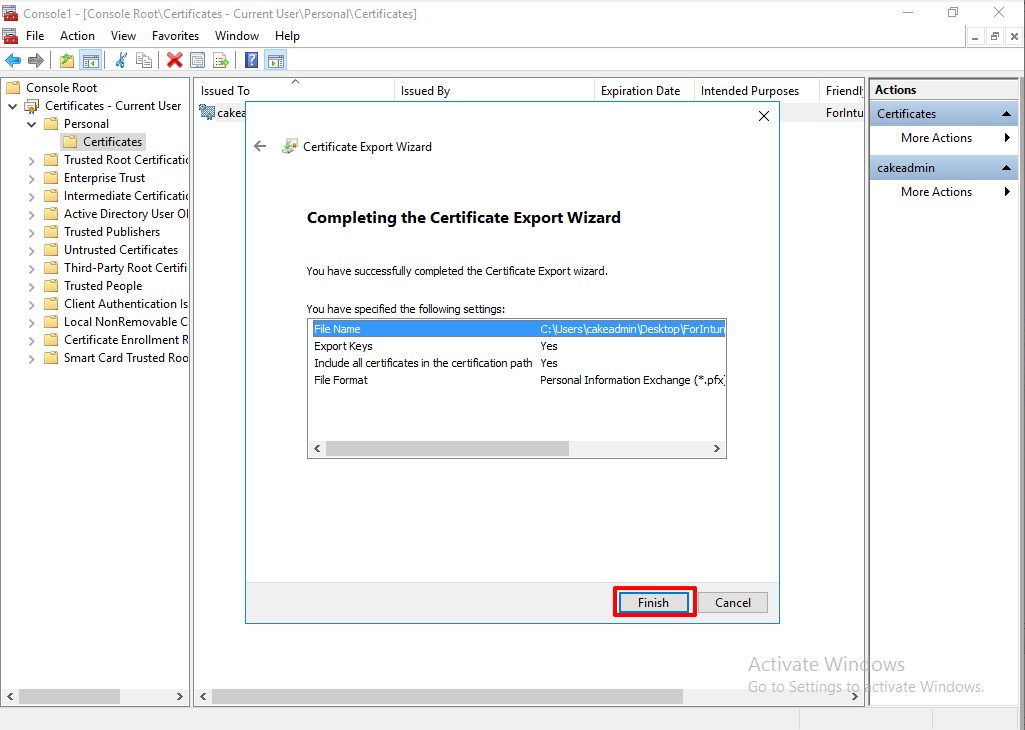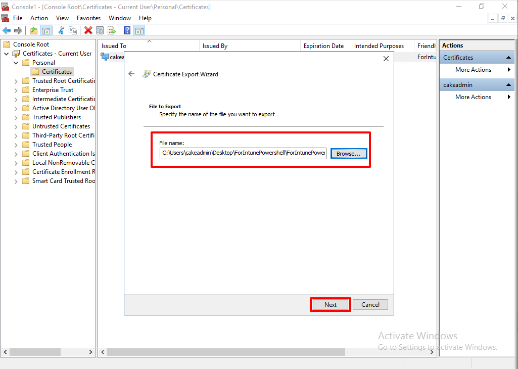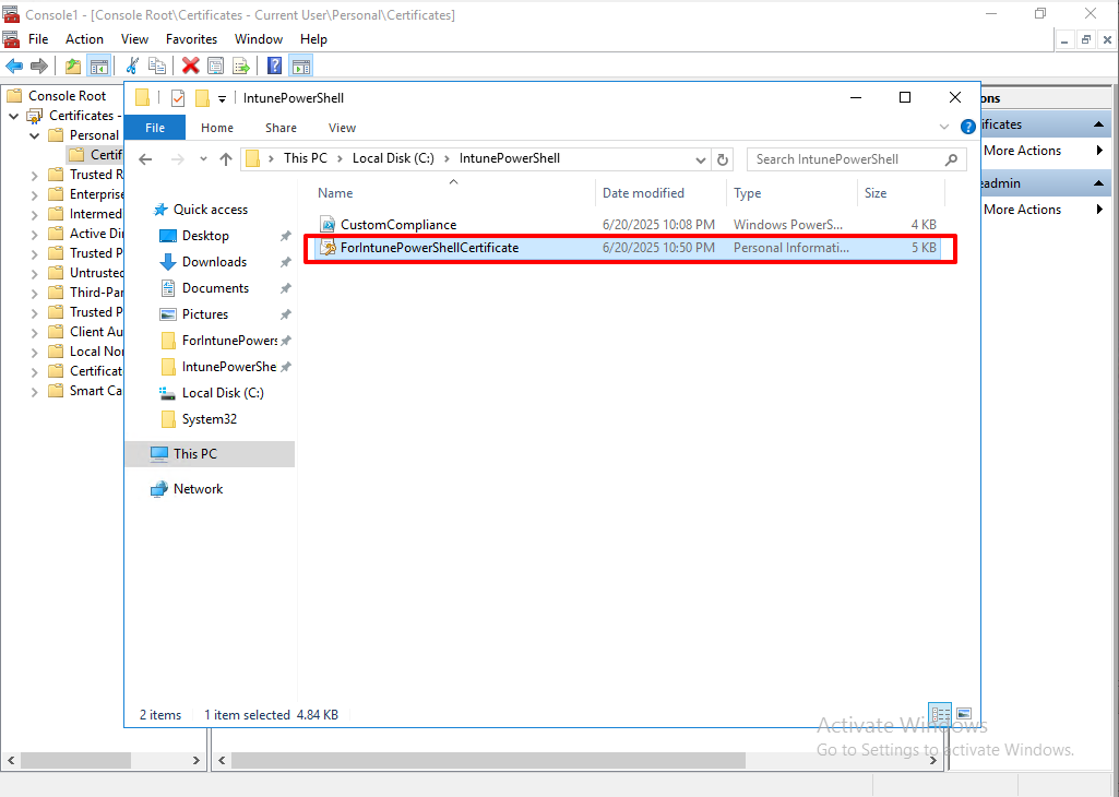 'Cert:\CurrentUser\My" is the path in the command where we issed the certificate under the personal.