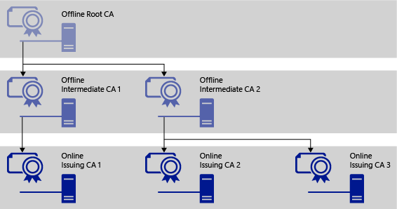 If you are planning to implement CA to your production environment, It's highly recommaneded to select the 3-tier certificate authorities. Please refer following document.
