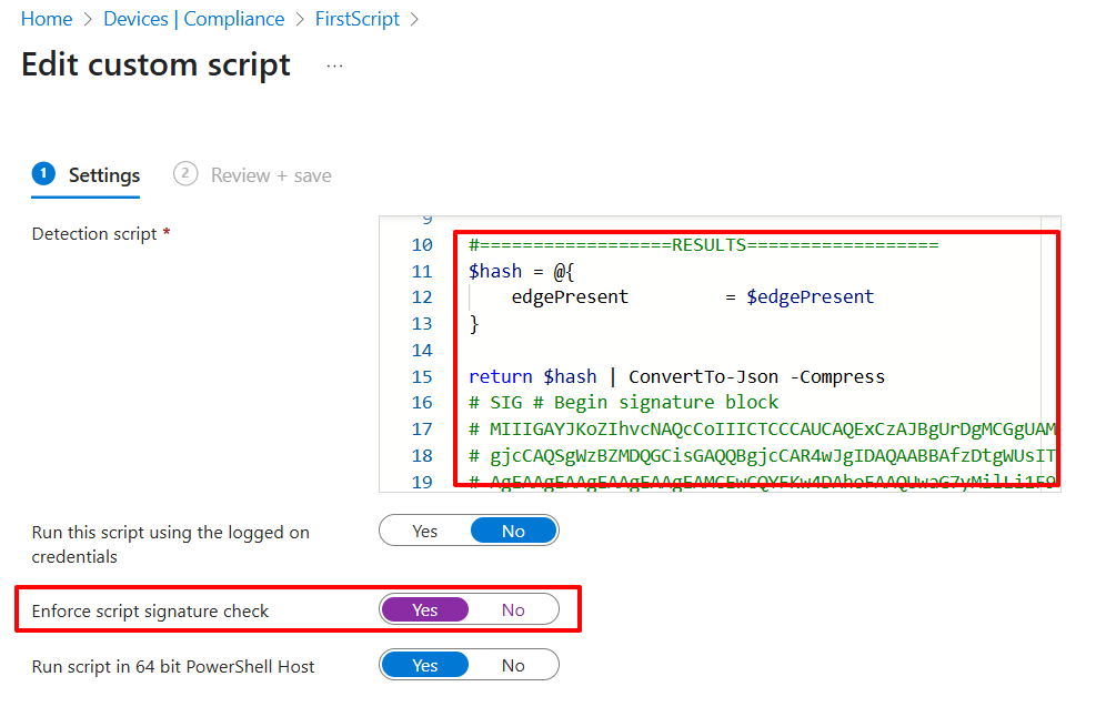 As a result, any PowerShell scripts executed through Intune are now required to be digitally signed, and script signature validation must be enforced at runtime.