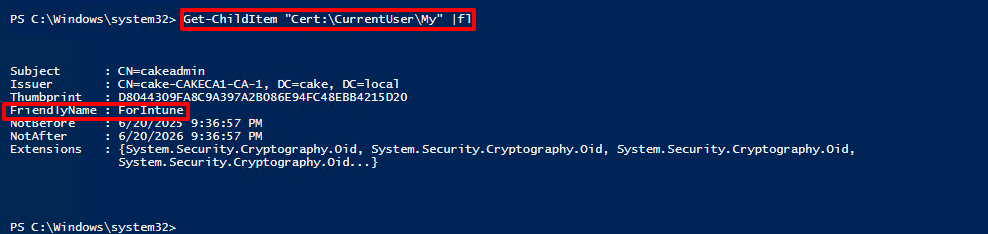 Get-ChildItem "Cert:\CurrentUser\My" | fl