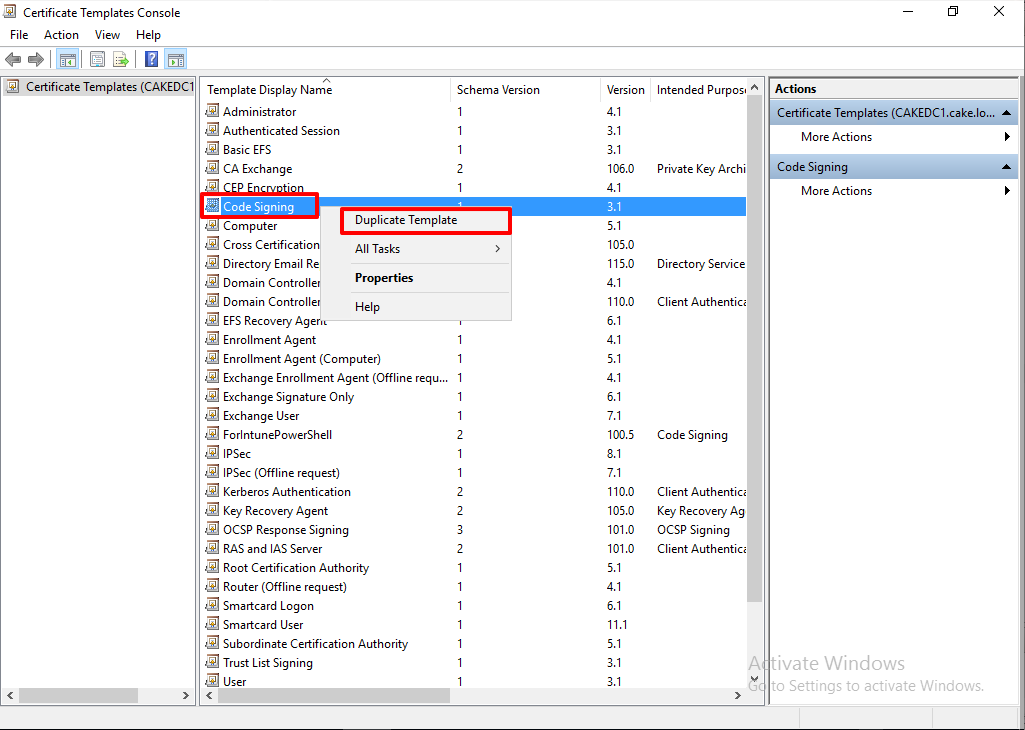 And Code Signing > (Right Click) Duplicate Template. Well, you can use this template directly but you can create your own template with duplicate from this one.