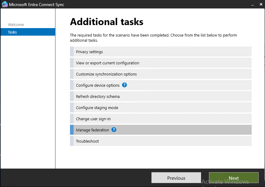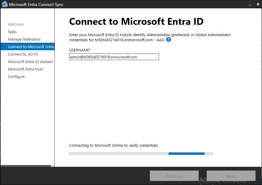 To federate your new domain, you should be identified tenant administrator and ADFS server administrator.