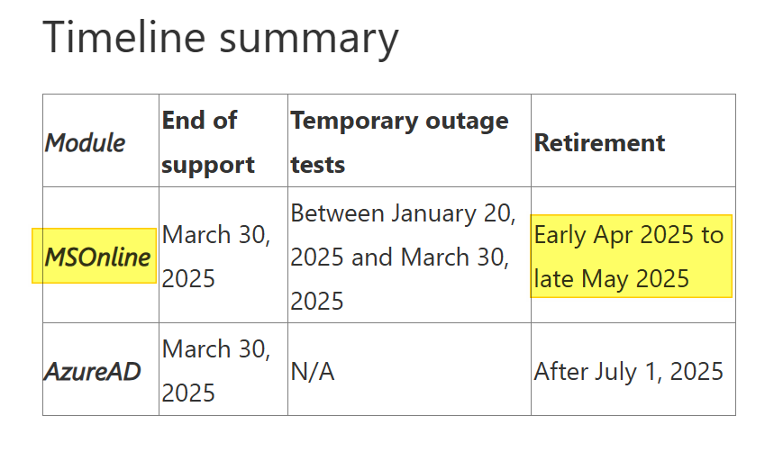 https://techcommunity.microsoft.com/blog/microsoft-entra-blog/action-required-msonline-and-azuread-powershell-retirement---2025-info-and-resou/4364991