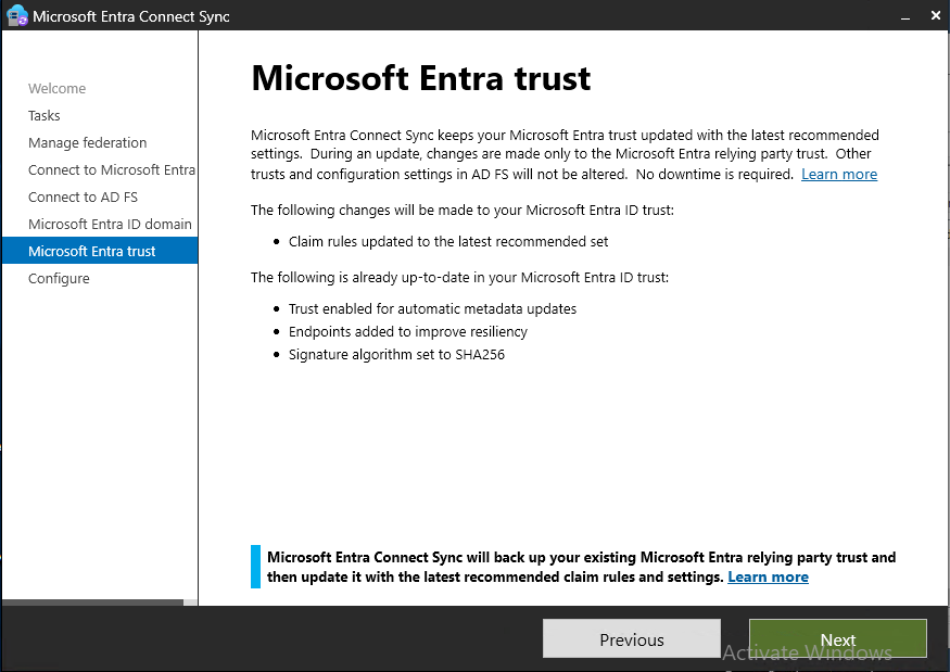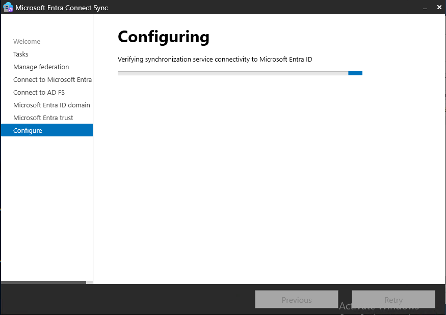Just let AADC do the work. Once it successfully deployed, you will see the original domain and your new domain displayed with check icon on the Federated collumn.