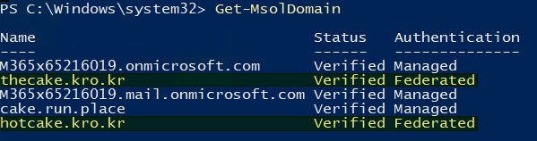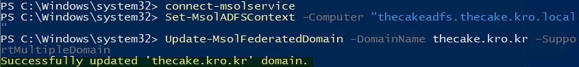 Update-MsolFederatedDomain -DomainName thecake.kro.kr -SupportMultipleDomain