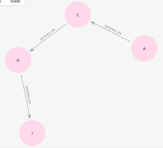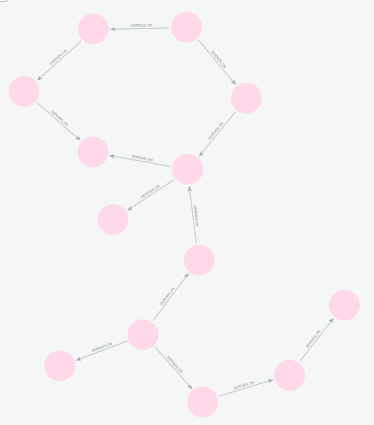 쿼리를 입력하면 아래와 같이 A노드와 I노드 사이의 관계를 나타내는 서브 그래프를 확인할 수 있다.