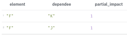 WITH e.id AS element, dependee.id AS dependee,