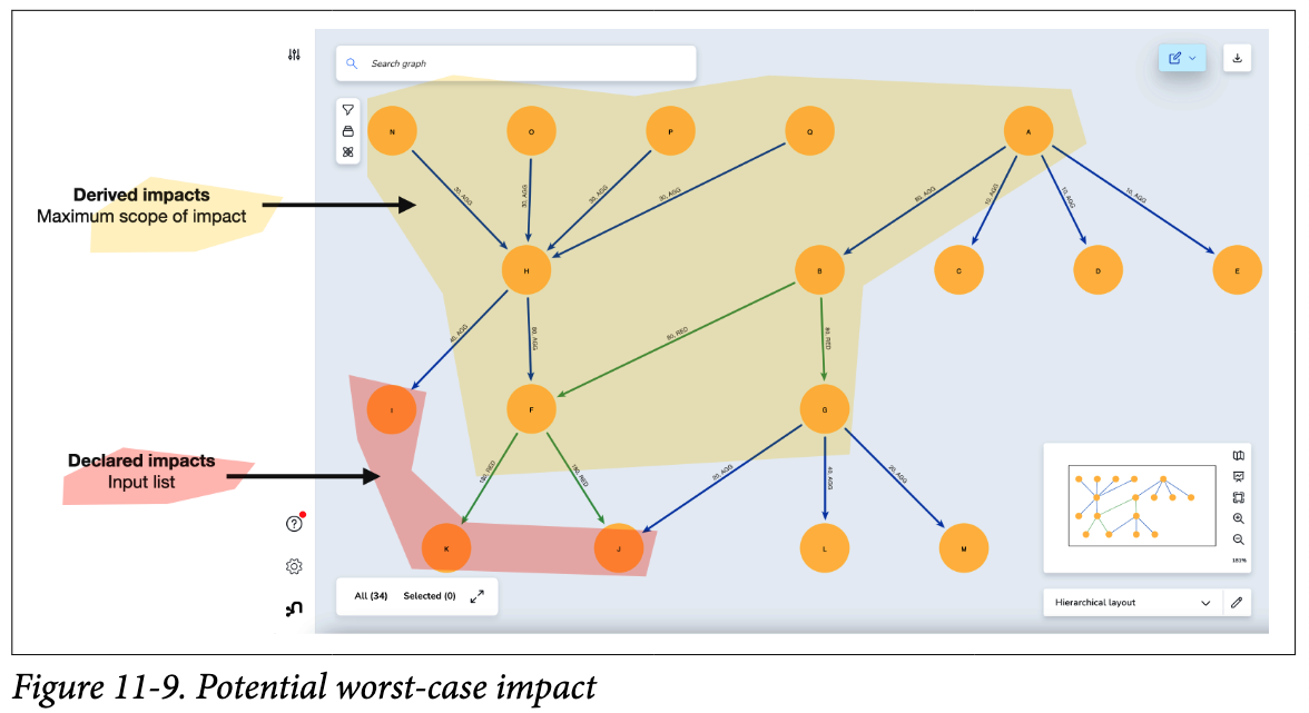 이제 우리는 눈으로도 직관적으로도 숨겨진 의존성 관계를 파악할 수 있다. 쿼리를 통해 그래프에서 숨겨진 의존성 관계를 찾는 것은 더 쉬운 작업이 되는데, 이는 숨겨진 의존성 관계도 명시적으로 표현되었기 때문이다.