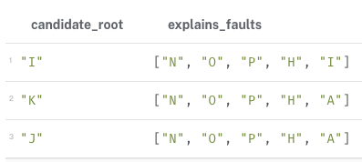 WITH x AS candidate_root, explains_faults