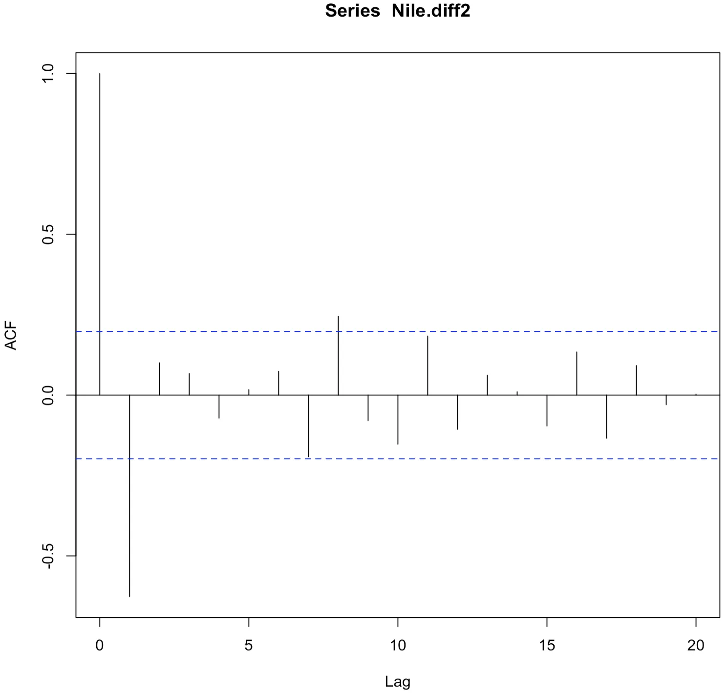 > Nile.diff2<-diff(Nile,differences=2)