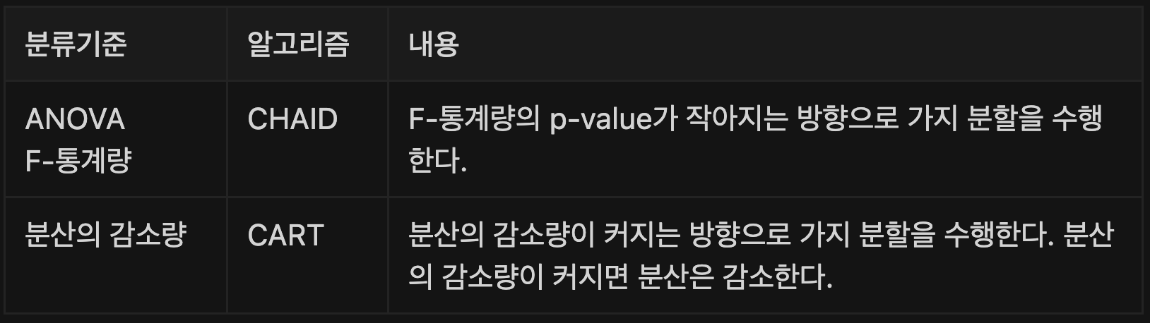 | 모형 검정 | F-검정, t-검정 | 카이제곱 검정(-test) |