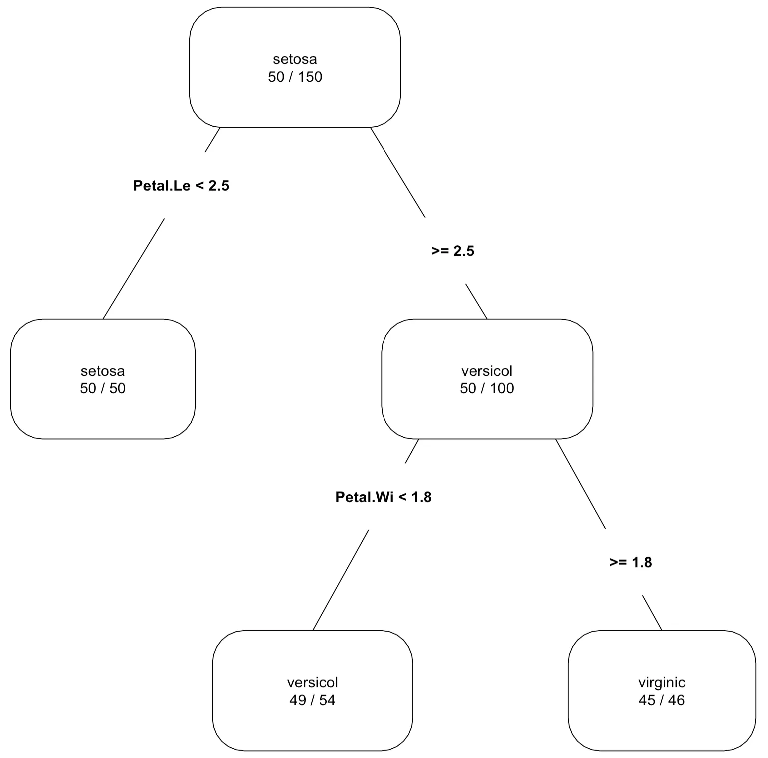 $ Petal.Width : num 0.2 0.2 0.2 0.2 0.2 0.4 0.3 0.2 0.2 0.1 ...
