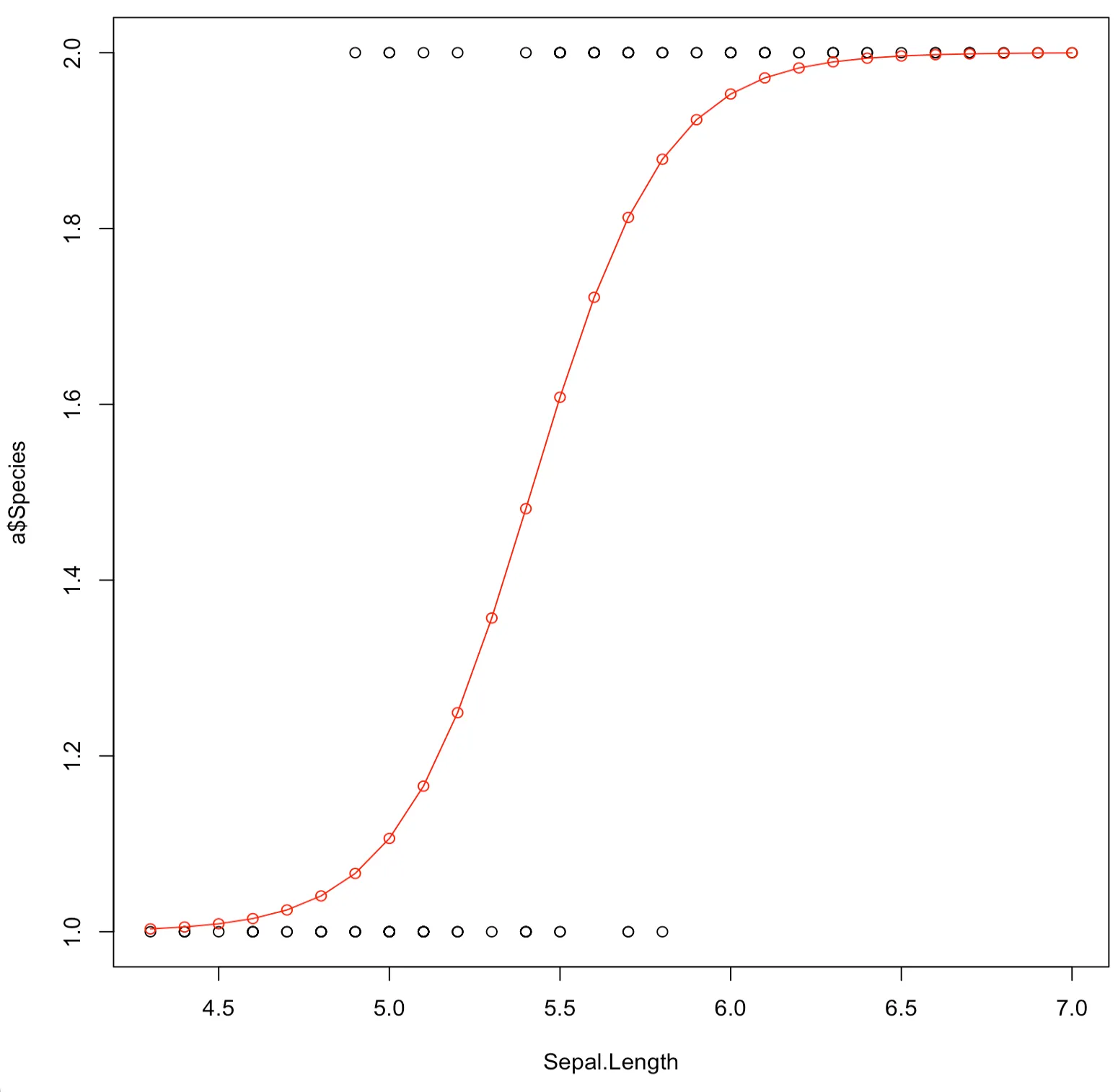 > b<-glm(Species~Sepal.Length,data=a,family=binomial)
