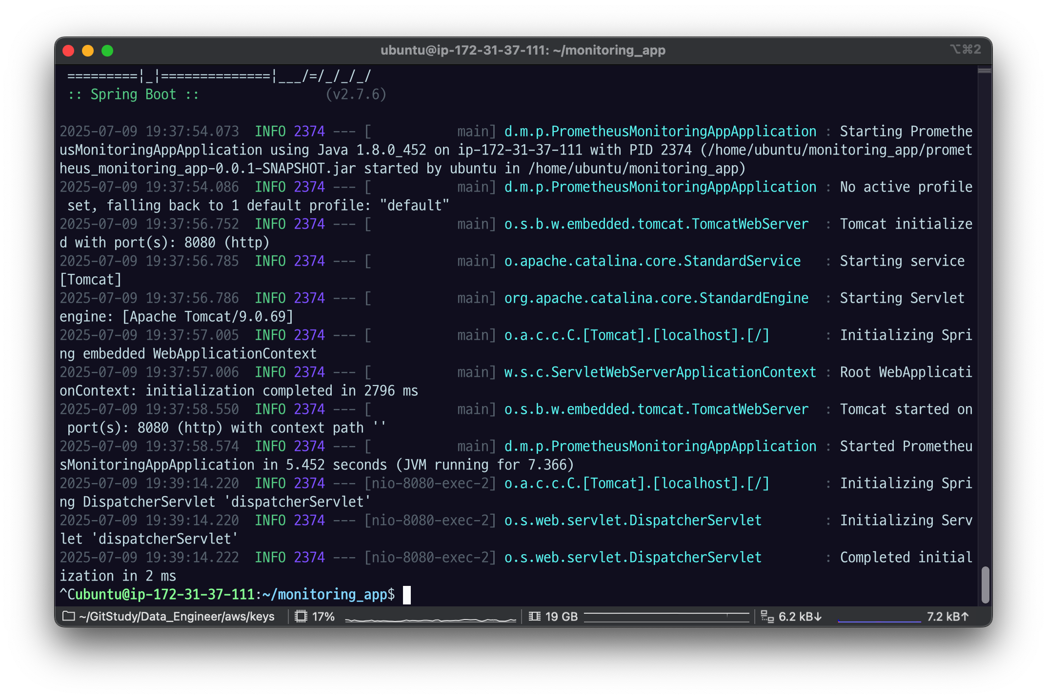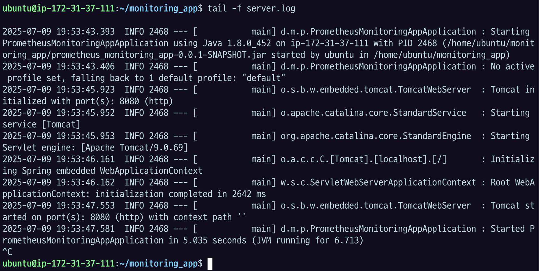 tail -f server.log 로 확인할 수 있따.
