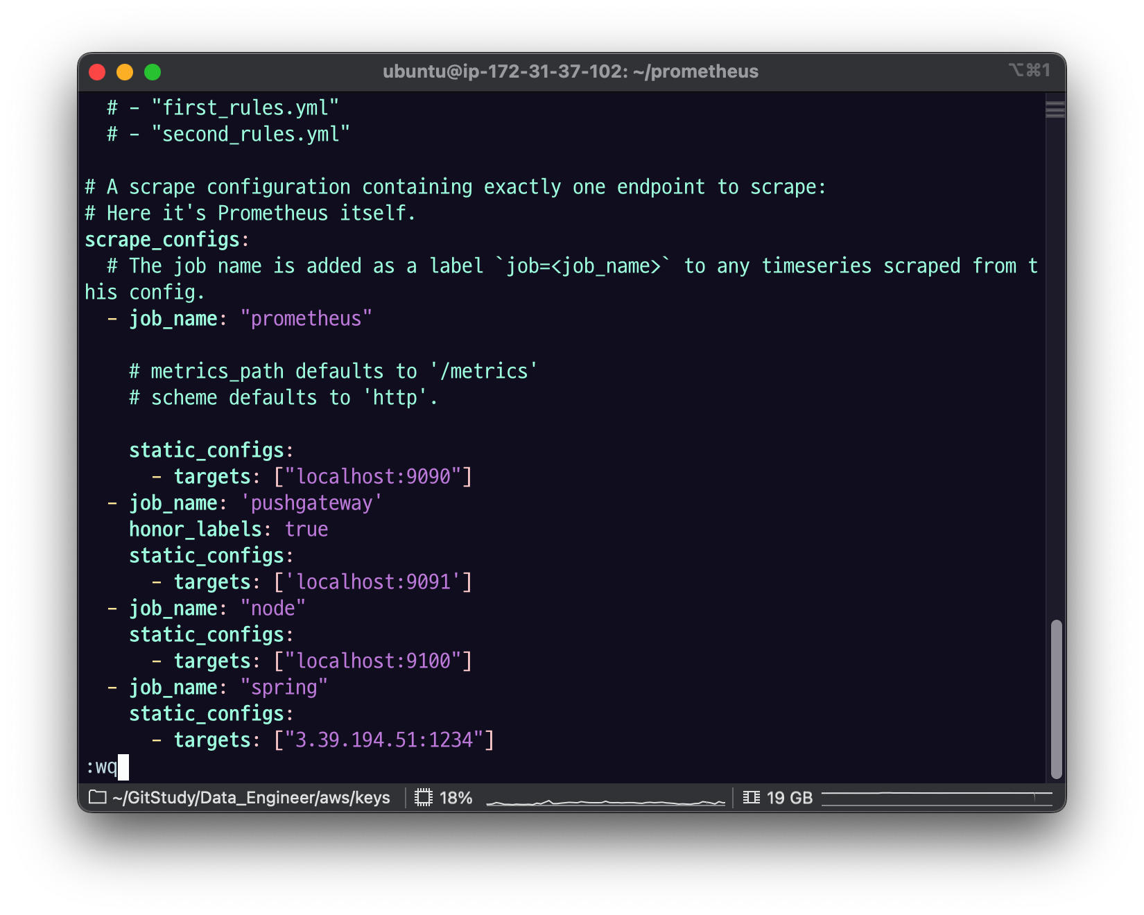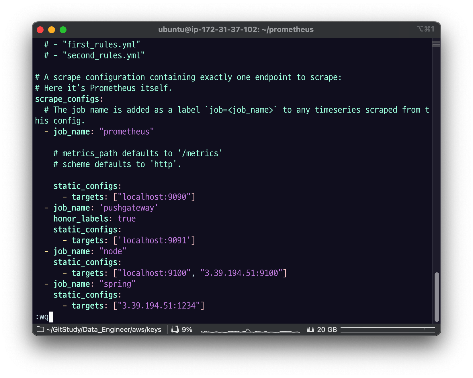 prometheus.yml에서 노드에 대상을 추가해주자.