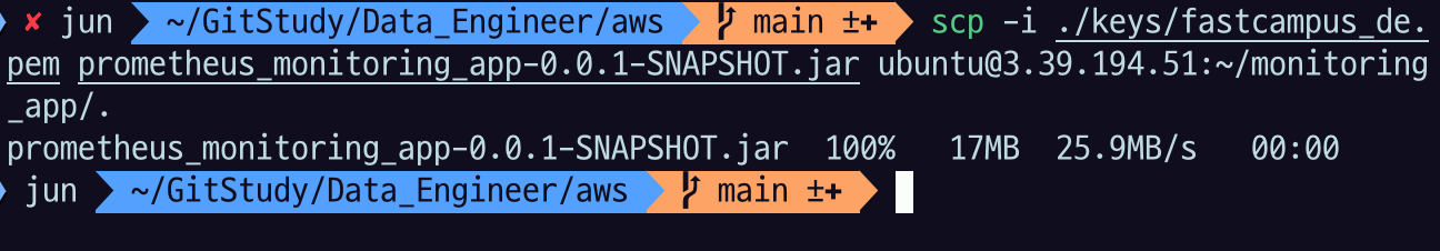 java 어플리케이션의 build 결과물인 jar를 scp 로 EC2에 전송하자.