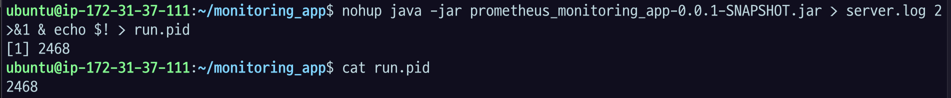 nohup java -jar $your_jar > server.log 2>&1 & echo $! > run.pid