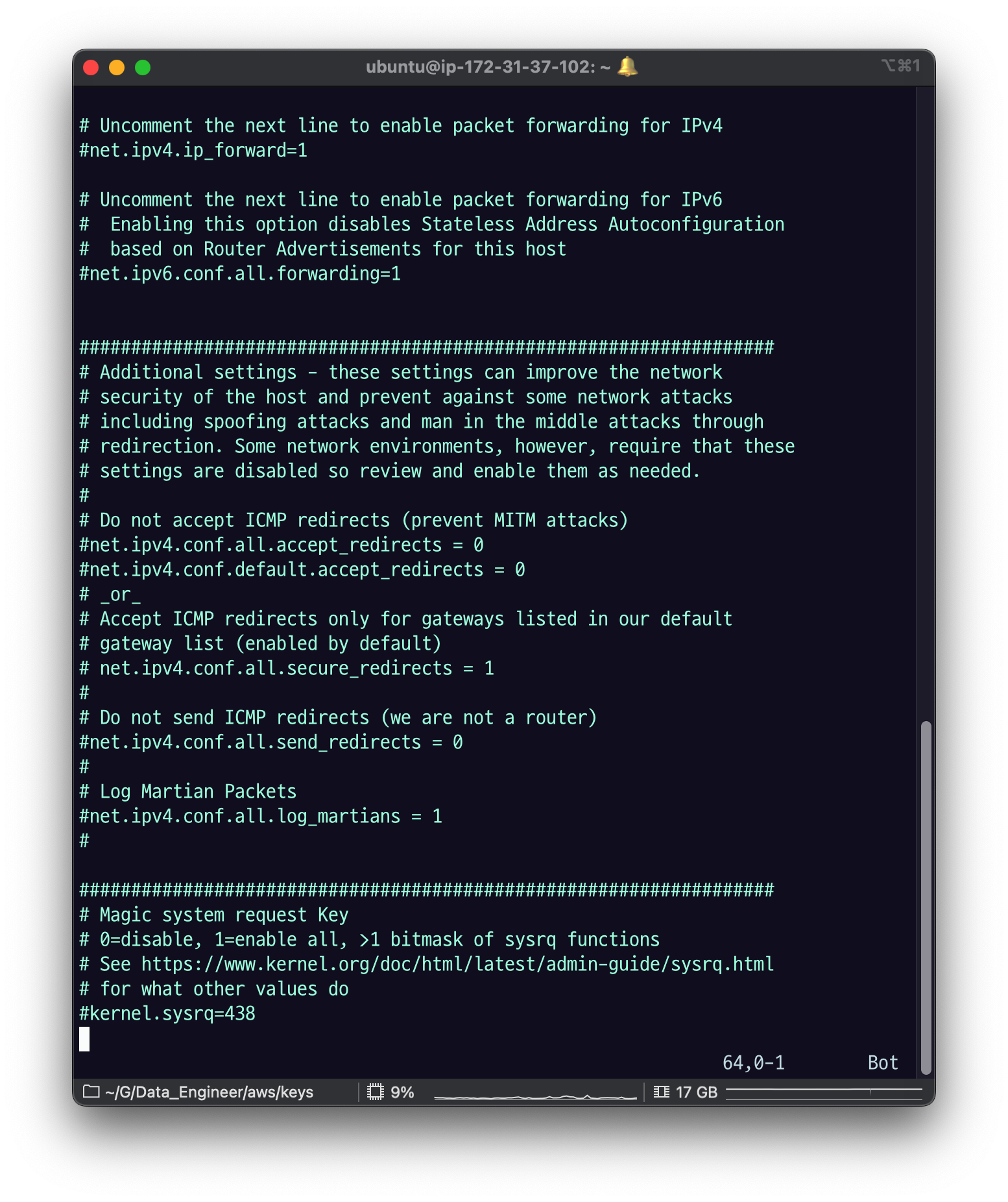 sudo vi /etc/sysctl.conf