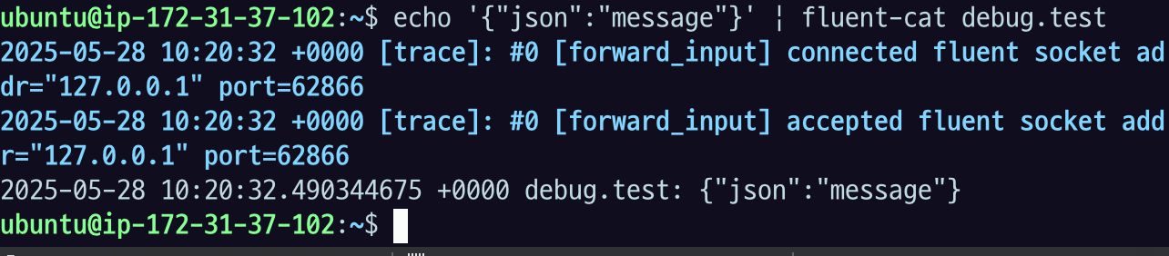 echo '{"json":"message"}' | fluent-cat debug.test