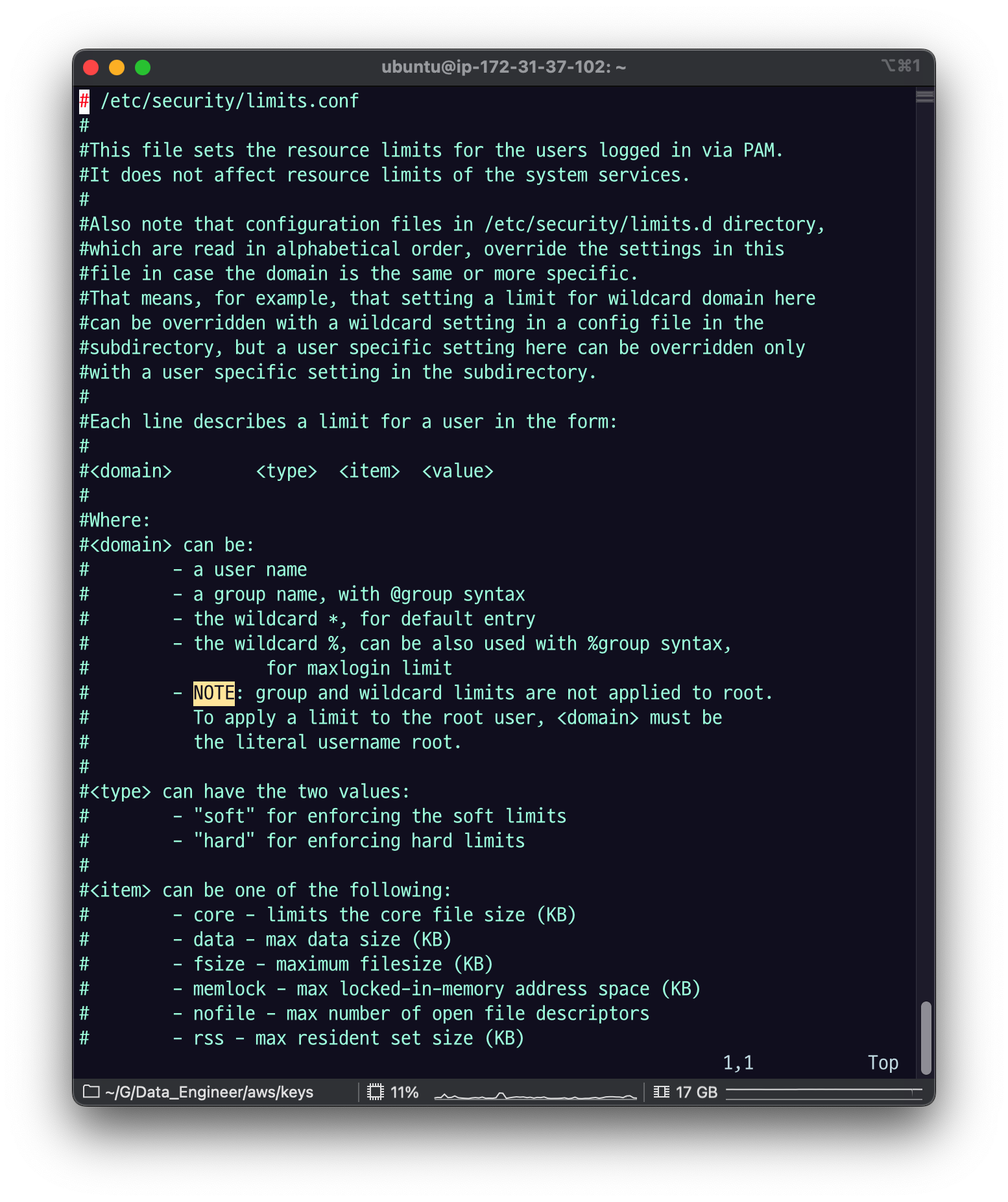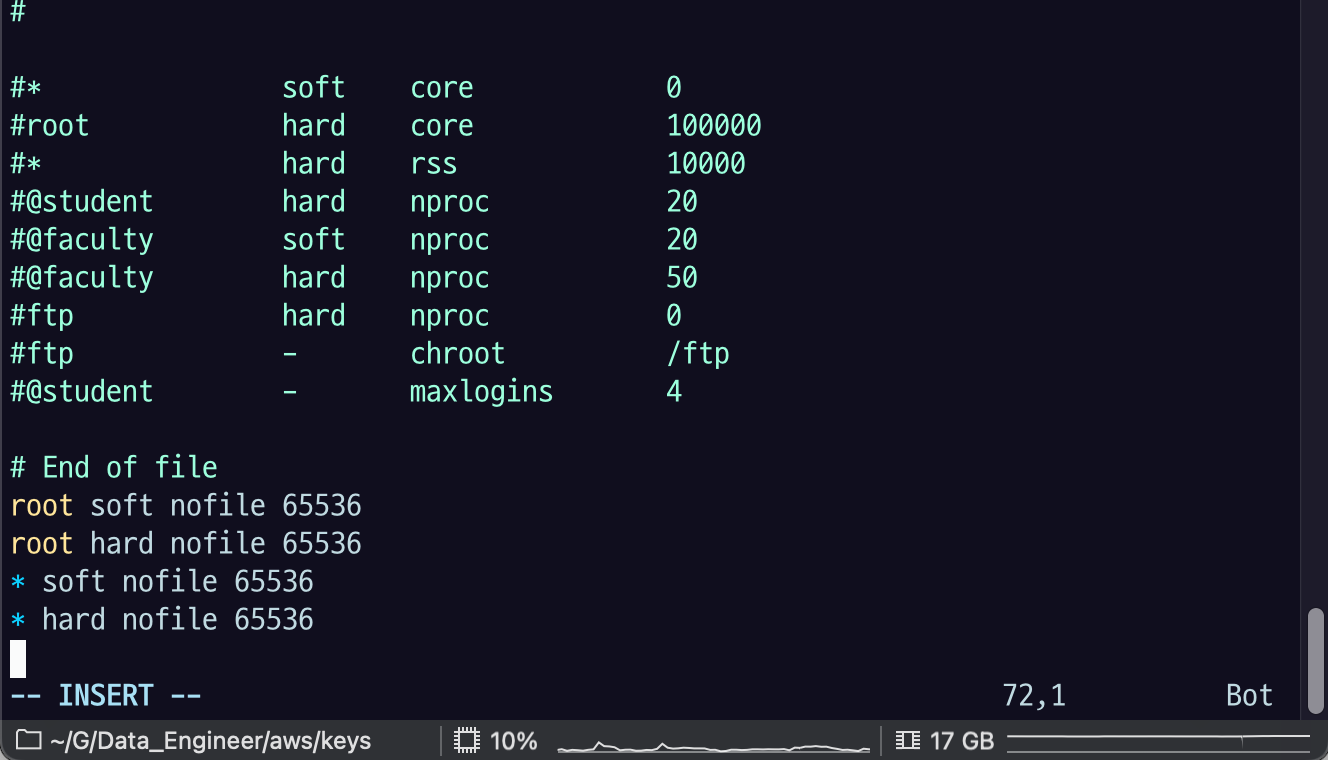 sudo vi /etc/security/limits.conf