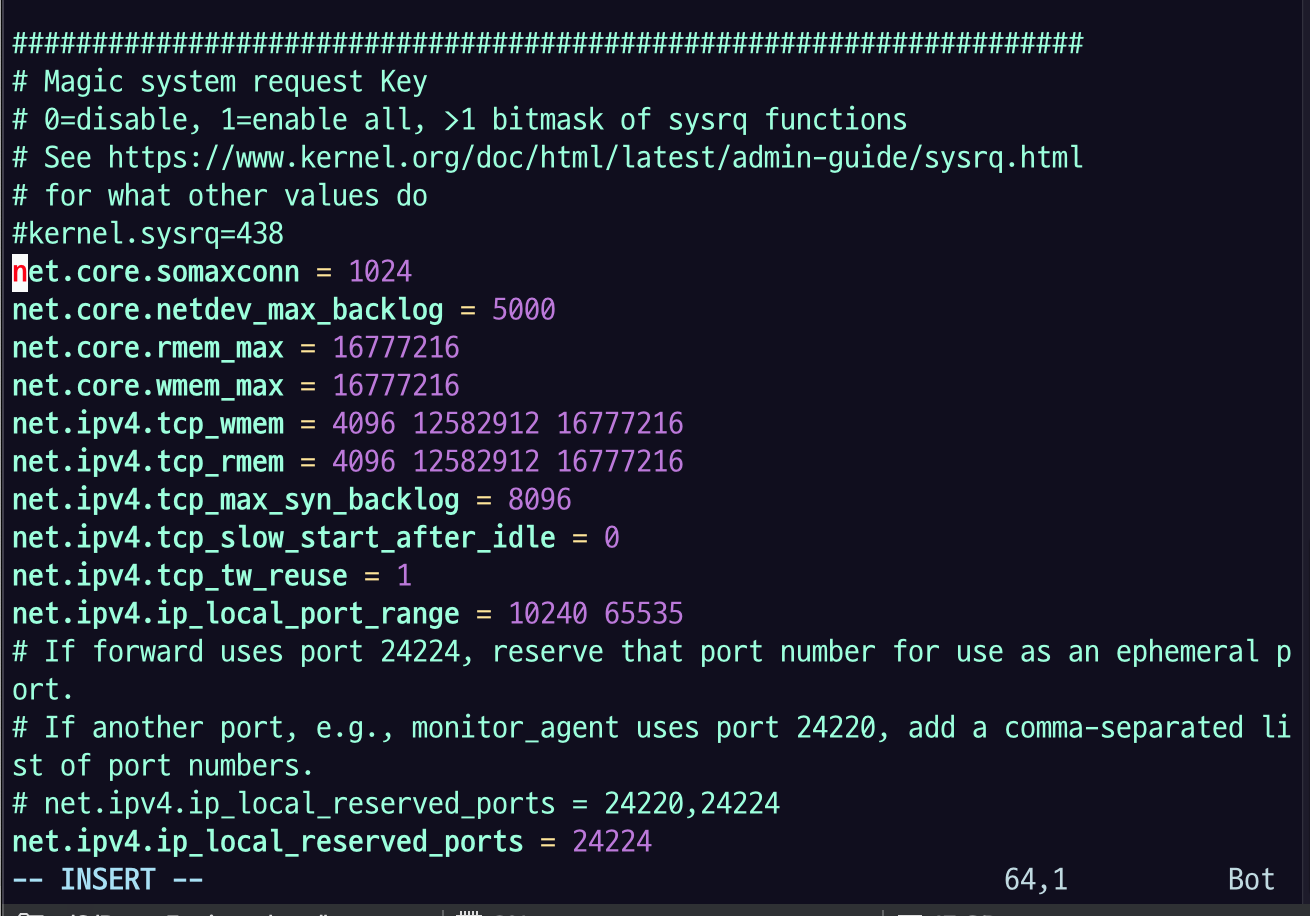 해당 내용을 적용할 떄는 sysctl -p 라는 커맨드를 수행하면 된다. 여기서 안 되는 경우는 reboot를 또 해야한다.