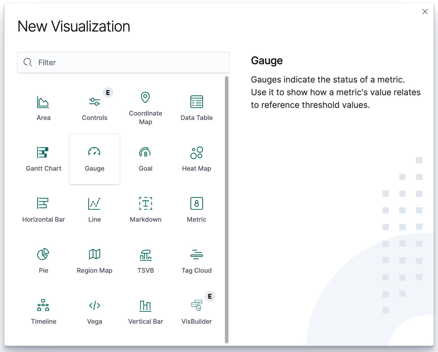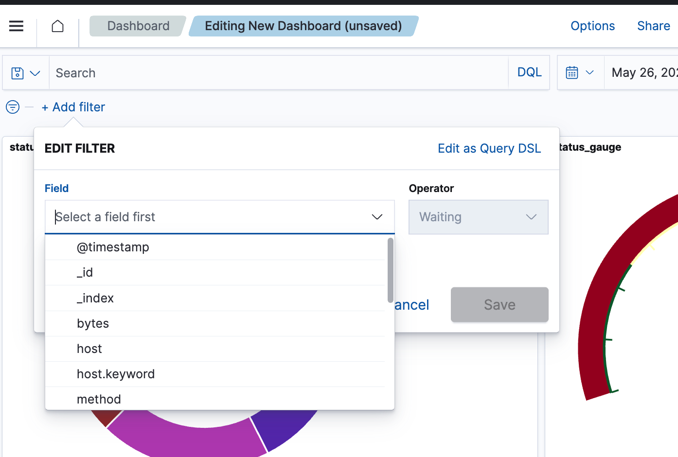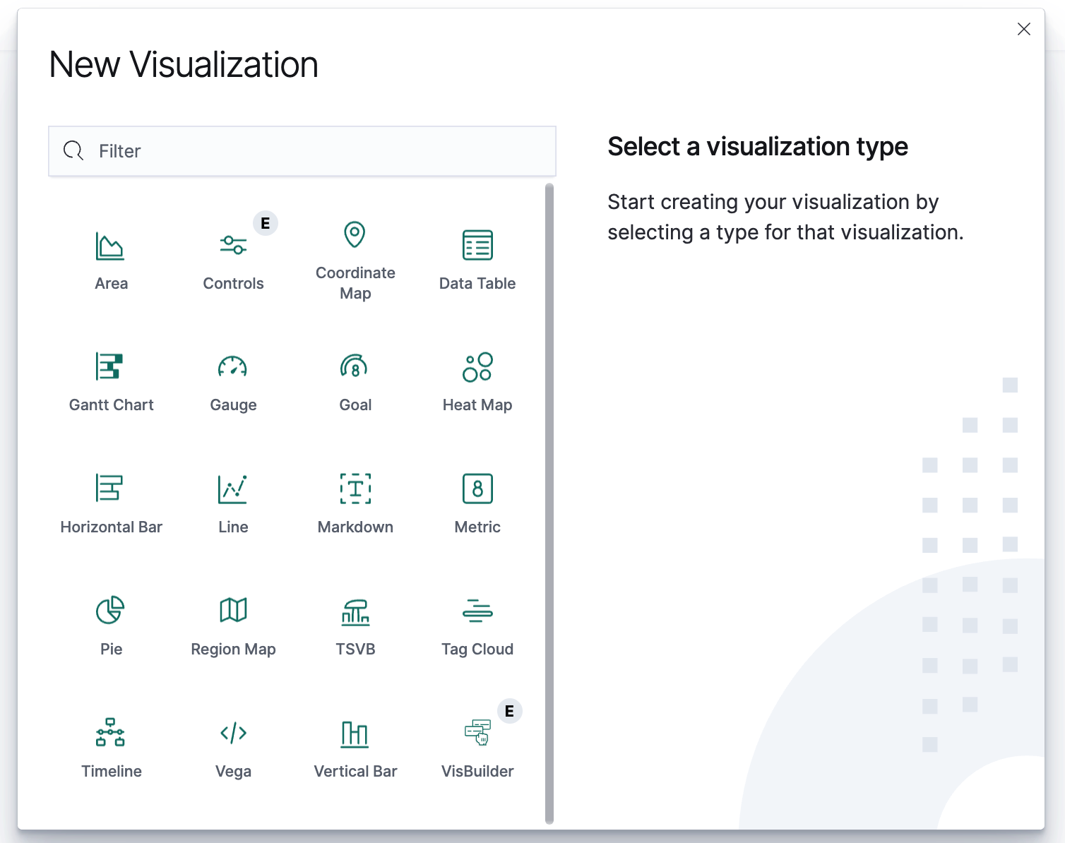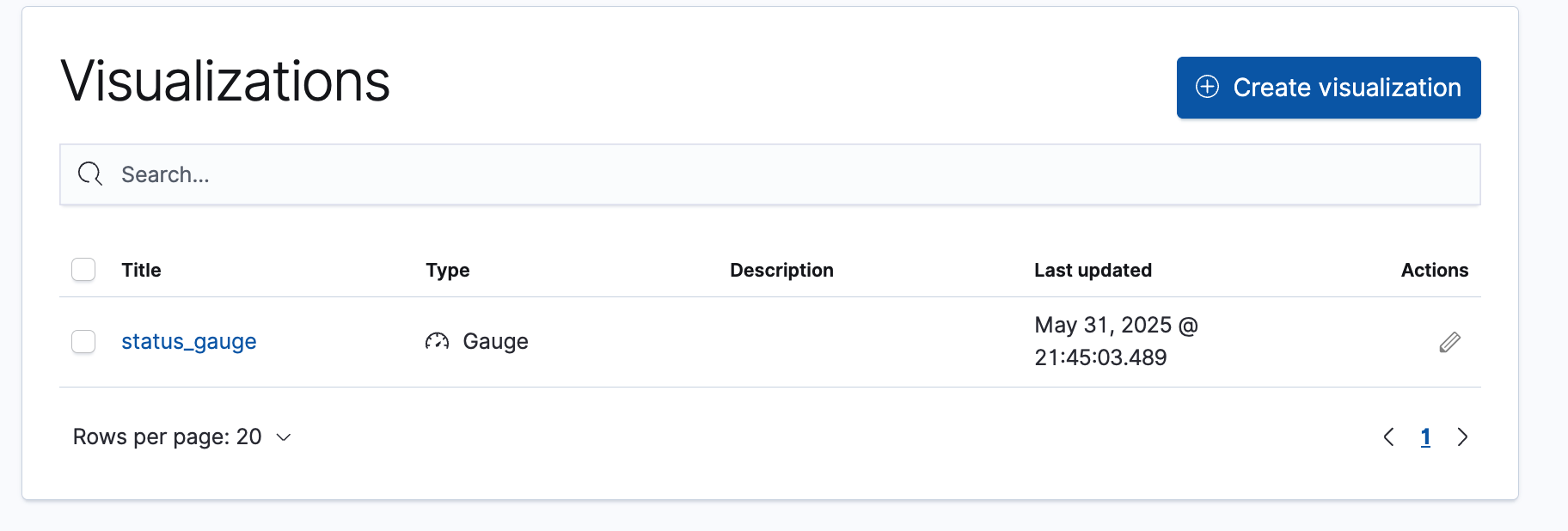 우측 상단 add 눌러서 미리 만들었던 visualization 가져올 수 있다.