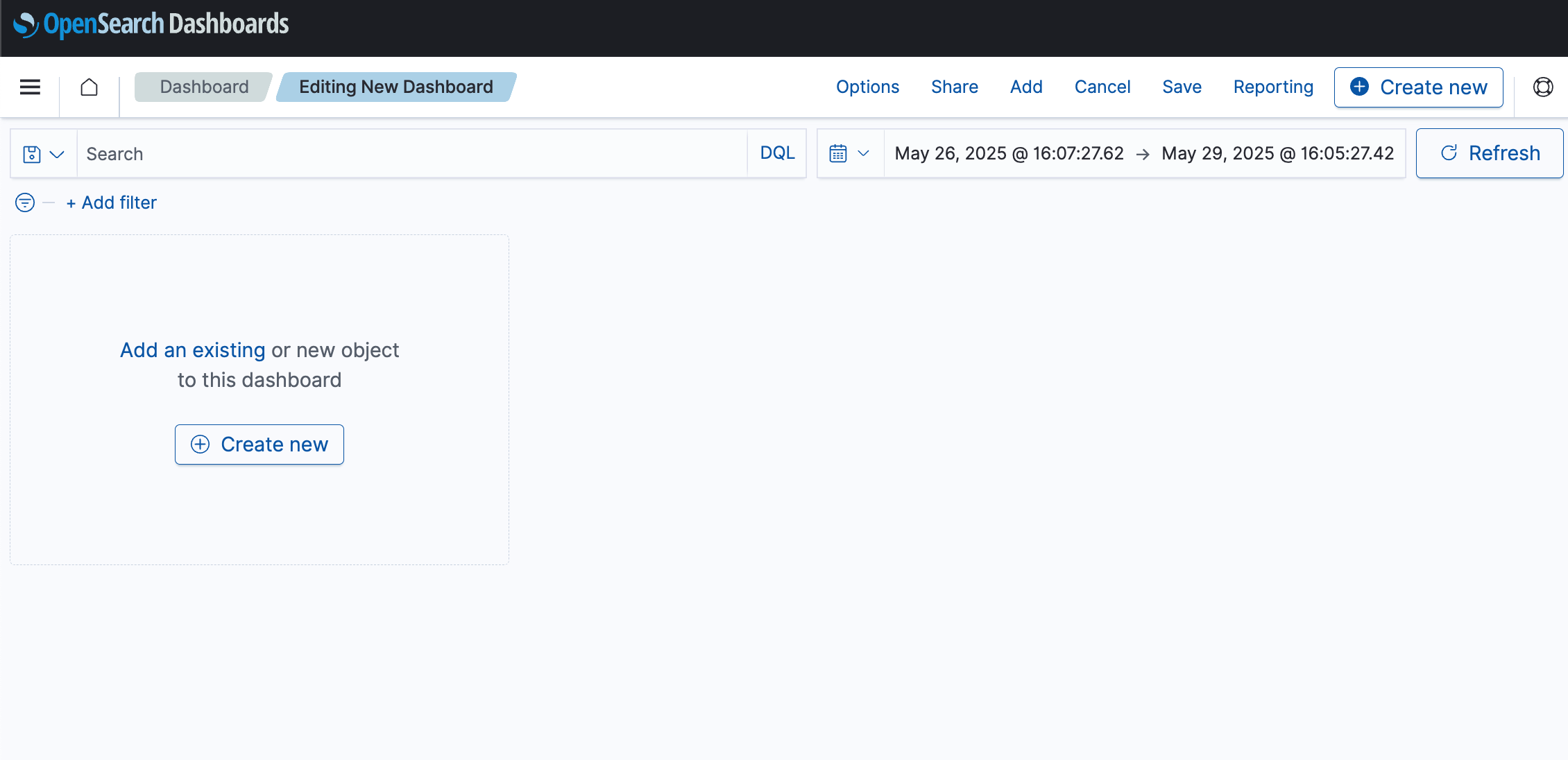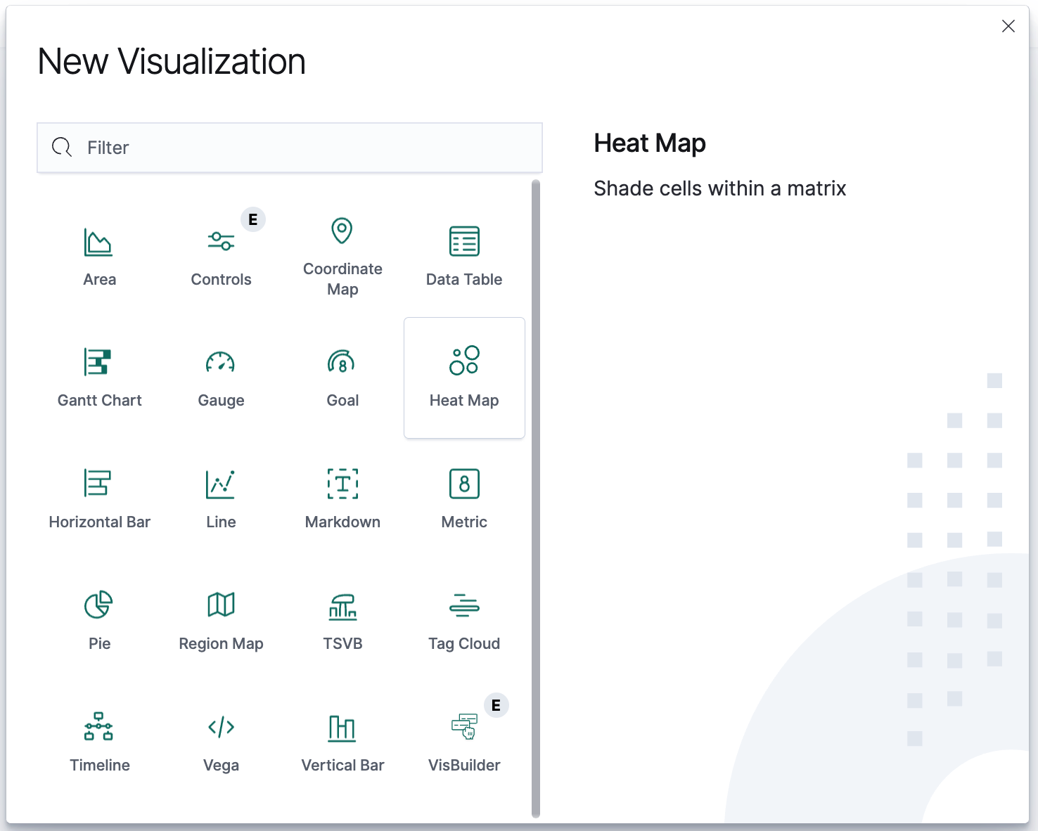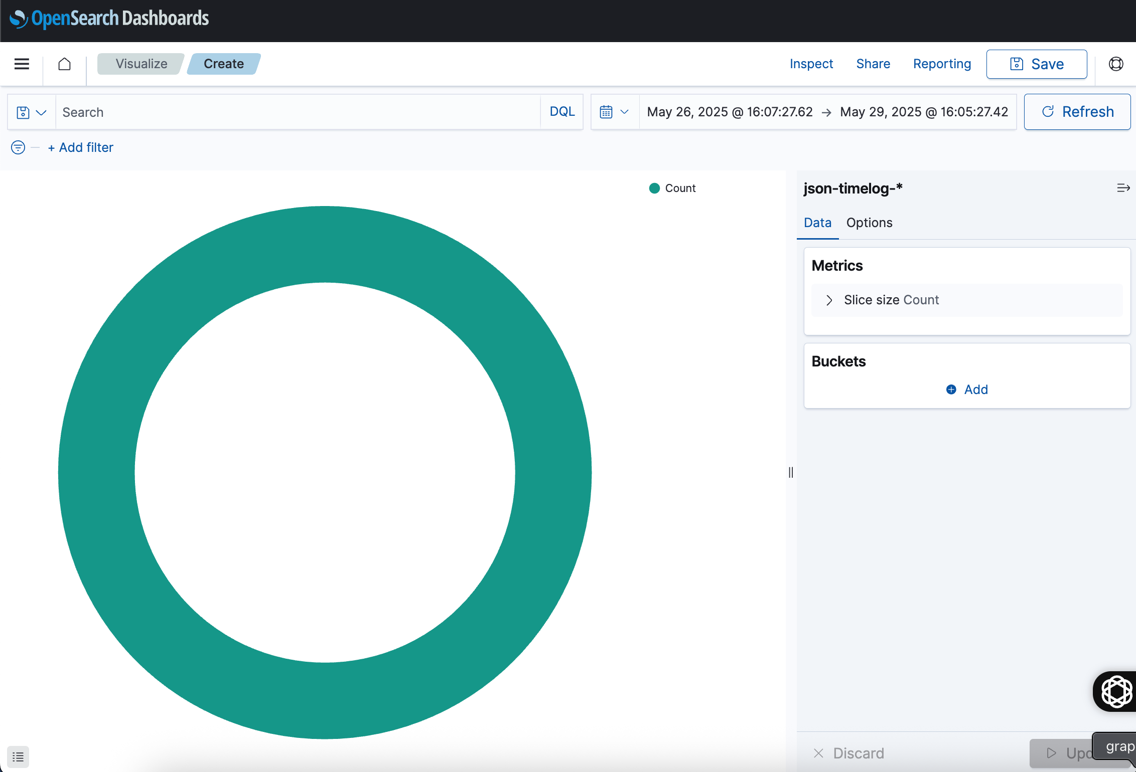 우측 상단 add 눌러서 미리 만들었던 visualization 가져올 수 있다.