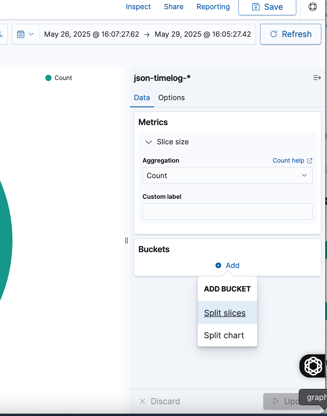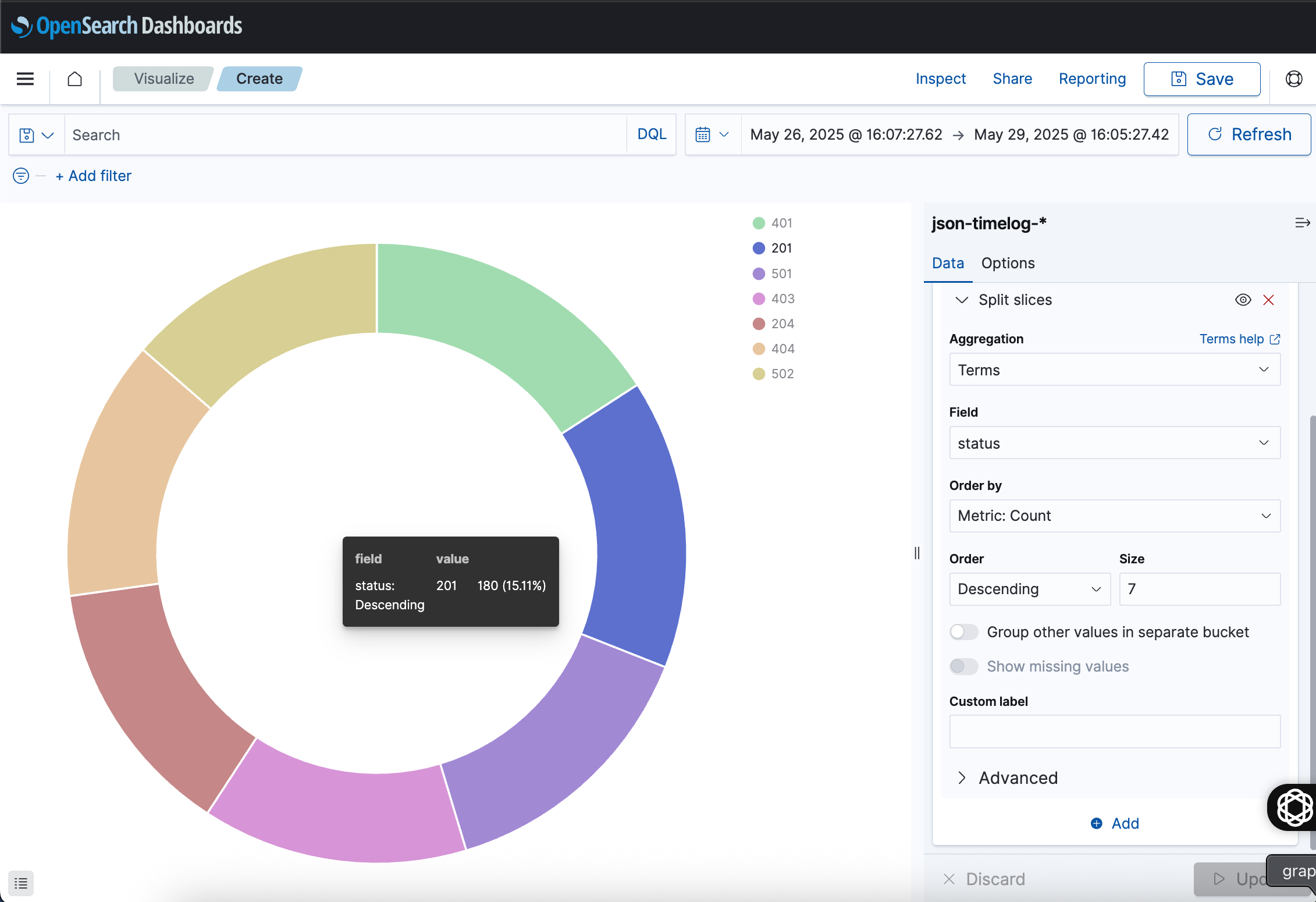 보면 status code 별로 몇개인지 pi차트로 확인할 수가 있다.