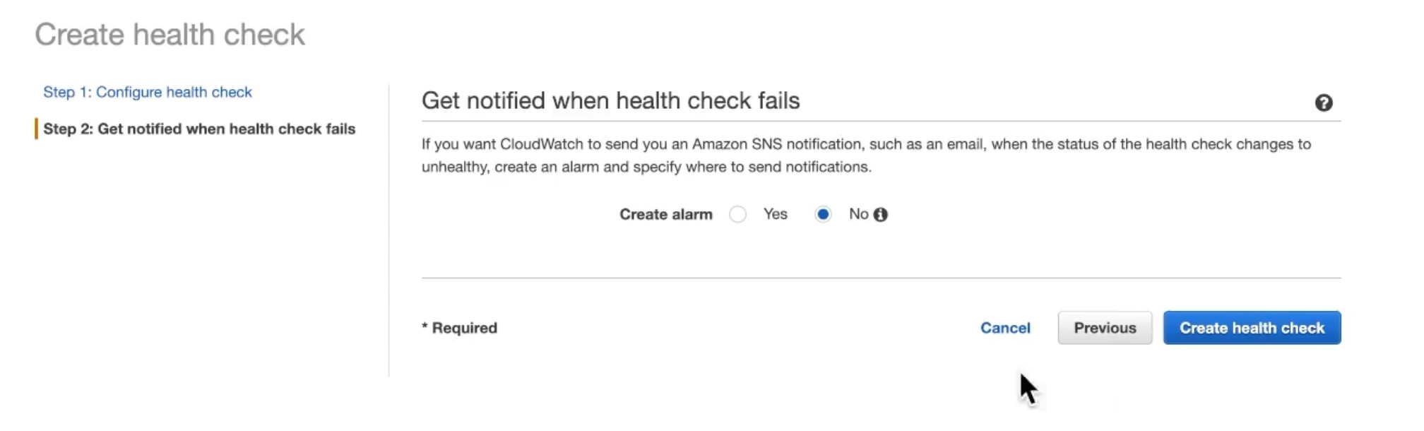 예전에는 Notification을 설정할 수 있는 단계가 있었으나, 현재는 바로 헬스 체크 생성이 완료된다.
