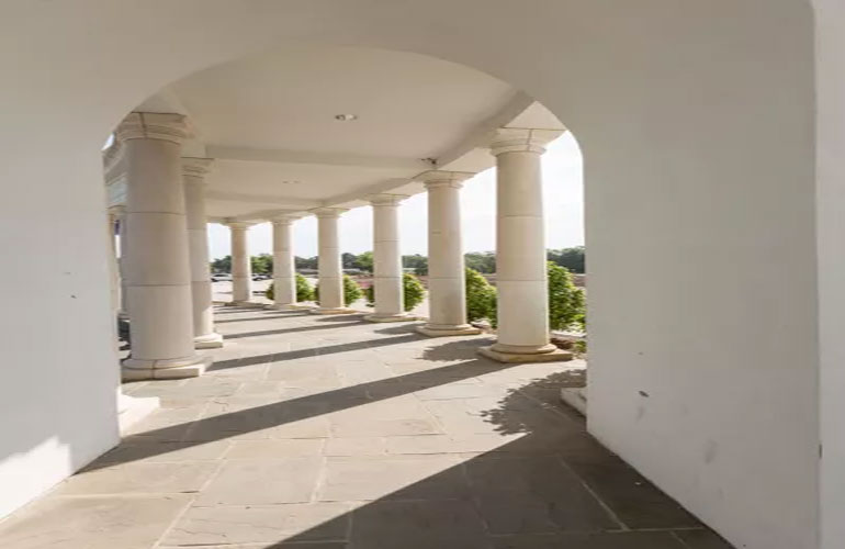 Are your wedding day visions of an outdoor ceremony? Our Colonnade is ascribed as a photographer’s dream. Redolent of Paris’ Grand Palais, the arched 24-column entablature, adorned by a fountain, awaits your distinguishing taste.