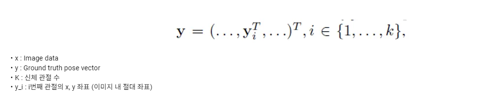 벡터 y_i는 i번째 관절의 x, y 좌표를 담은 2차원 벡터이고, 벡터 y는 이러한 y_i인 2차원 벡터 k개를 쭉 펼쳐서 이어 붙인 2k 차원의 벡터입니다.