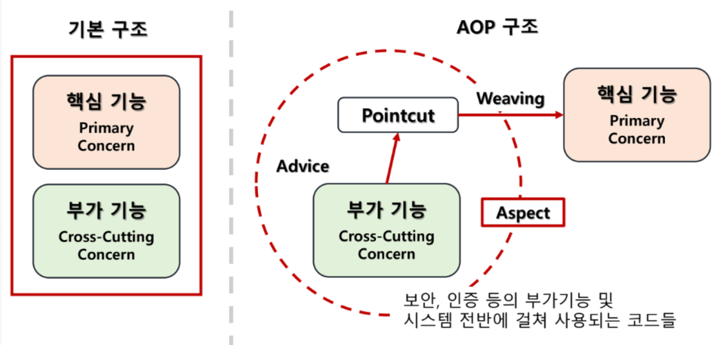AOP는 공통 관심 사항(cross-cutting concern)을 핵심 관심 사항(core concern)에서 분리하여 중복 코드를 제거하고, 애플리케이션의 모듈화 수준을 높여 공통기능을 독립적으로 관리함으로서 유지보수를 용이하게 한다.