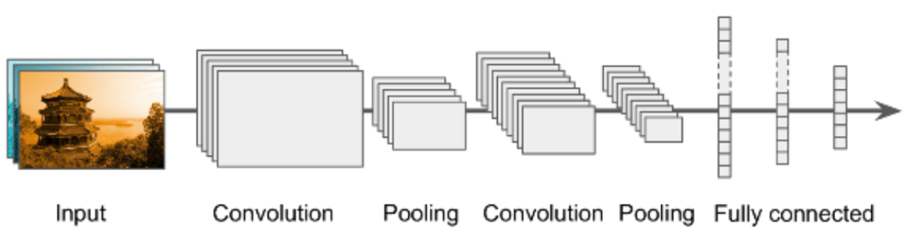 # Conv (layer) block # 1. Conv + ReLU + MaxPooling, (Conv + ReLU + Conv + ReLU +MaxPooling) # 2. Conv + BatchNorm + ReLU + MaxPooling (BatchNorm 은 Conv, Activation 사이에 정의) # 3. Conv + ReLU + Dropout + MaxPooling (Dropout activiation 다음에 정의) # 4. Conv + BatchNorm + ReLU + Dropout + MaxPooling # # CNN: filter(channel-depth) 개수는 늘리고 size(height, width)는 줄여나가도록 모델 네트워크를 구성. #### depth 늘리는 것: Convolution Layer, size 를 줄이것: Max Pooling import torch.nn as nnclass MnistCNNModel(nn.Module):def __init__(self, dropout_rate): super().__init__() # conv block 단위 생성. # Conv: kernel size- 3 x 3, stride=1(default), padding=same, MaxPooling: kernel size-2, stride=1 self.b1 = nn.Sequential( nn.Conv2d(1, 32, kernel_size=3, stride=1, padding="same"), nn.BatchNorm2d(32), # 입력 channel 수 nn.ReLU(), nn.Dropout(p=dropout_rate), nn.MaxPool2d(kernel_size=2, stride=2) ) self.b2 = nn.Sequential( nn.Conv2d(32, 64, kernel_size=3, padding="same"), # stride기본값: 1 nn.BatchNorm2d(64), nn.ReLU(), nn.Dropout(p=dropout_rate), nn.MaxPool2d(kernel_size=2, stride=2) ) self.b3 = nn.Sequential( nn.Conv2d(64, 128, kernel_size=3, padding="same"), nn.BatchNorm2d(128), nn.ReLU(), nn.Dropout(p=dropout_rate), nn.MaxPool2d(kernel_size=2, stride=2, padding=1) # input: 7 X 7 -> padding 1 ( 8 X 8) ) # # 추론기 -> Linear() self.classifier = nn.Sequential( ## conv output: 3차원, linear input: 1차원 nn.Flatten(), nn.Linear(in_features=128*4*4, out_features=256), nn.ReLU(), nn.Dropout(p=dropout_rate), nn.Linear(256, 10) # out_features=10: 정답 class 수. (0 ~ 9) )def forward(self, X): out = self.b1(X) out = self.b2(out) out = self.b3(out) out = self.classifier(out) return outcnn_mnist_model = MnistCNNModel(0.5) summary(cnn_mnist_model, (batch_size, 1, 28, 28))