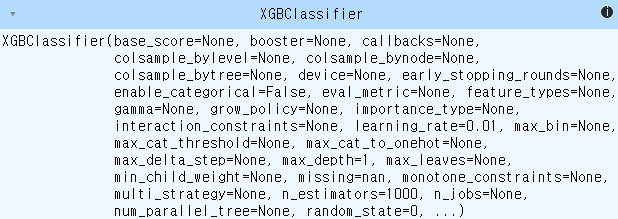 from sklearn.datasets import load_breast_cancer from sklearn.model_selection import train_test_split X, y = load_breast_cancer(return_X_y=True) X_train, X_test, y_train, y_test = train_test_split(X, y, stratify=y, random_state=0)from xgboost import XGBClassifier # , XGBRegressor xgb = XGBClassifier(n_estimators=1000, learning_rate=0.01, max_depth=1, random_state=0) xgb.fit(X_train, y_train)