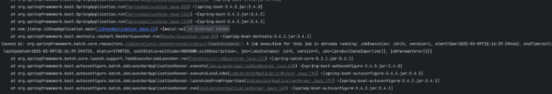 테스트 도중 에러가 터졌는데, 아래처럼 "Step already complete or not restartable" 에러 메시지가 출력 되었다.