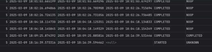 여기 END_TIME 이 기록되지 않은 상태로 비정상 종료된것 같았다.