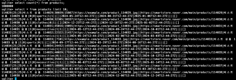 백만 개의 상품 데이터로 테스트하기 위해 아래와 같은 방법을 시도했다.