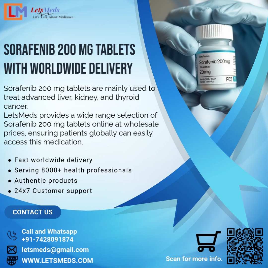 They provide both branded Sorafenib 200 mg and generic alternatives, ensuring patients receive treatment at the best Sorafenib 200 mg price available. If you are searching for buy Sorafenib 200 mg, contact LetsMeds at +91-7428091874 or visit their website http://www.letsmeds.com to place your order and more information.