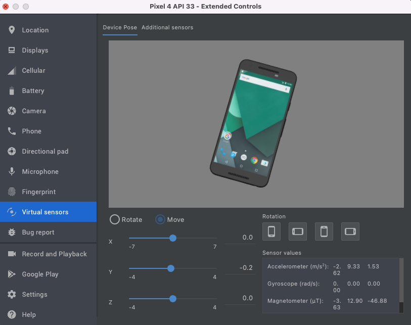 Virtual sensors의 Move를 선택하고 Y의 값을 움직이면 숫자가 올라간다.