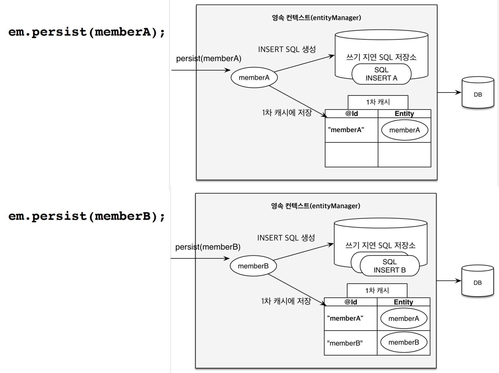 DB에 저장한다 라는 개념보다는 영속성 컨텍스트를 통해서 "엔티티를 영속화 한다." 라고 생각하면 된다.