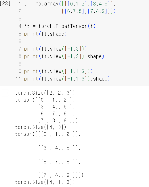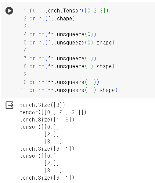 두번째의 print에서는 dim을 1로 주어 조건을 주지 않았을때는 (3,2)로 만들어지는데 이때 3을 dim=1에다가 위치하게 하여 (2,3)이 되도록 합니다.
