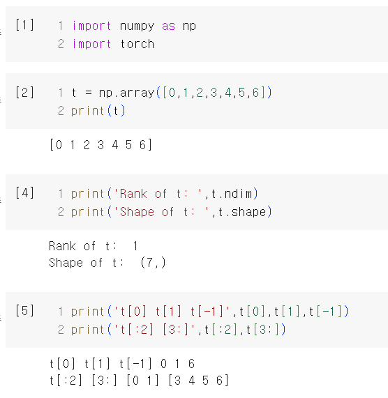 Numpy를 이용한 모습과 동일하게 선언이 가능합니다.